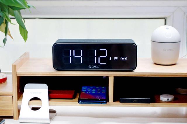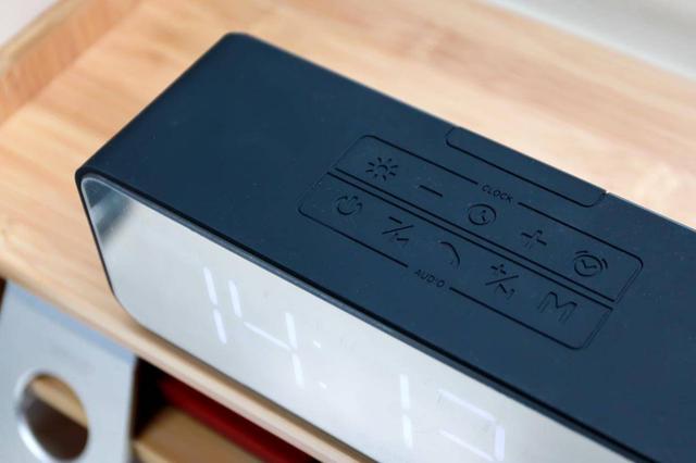 这款产品的时钟与音箱功能是分开控制的,互不干扰,控制按键集中在顶部。且外面包裹了一层防撞防滑的塑胶材质,手感柔软,平时磕磕碰碰相信没有多大问题。既满足了家居有可以作为户外音箱使用。