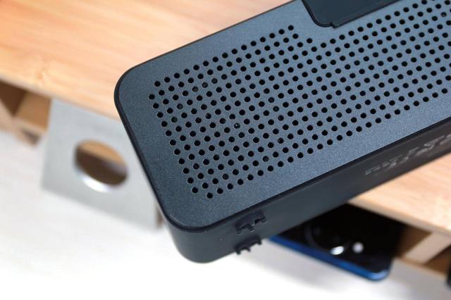 奥睿科镜面时钟蓝牙音箱的另外面是可以作为音箱使用。个人感觉,在音质方面,表现还不错,比我之前的小爱mini蓝牙音箱要好很多,从这个音箱正面的网格,微微可以看到这款音箱左右分布有两个喇叭。
