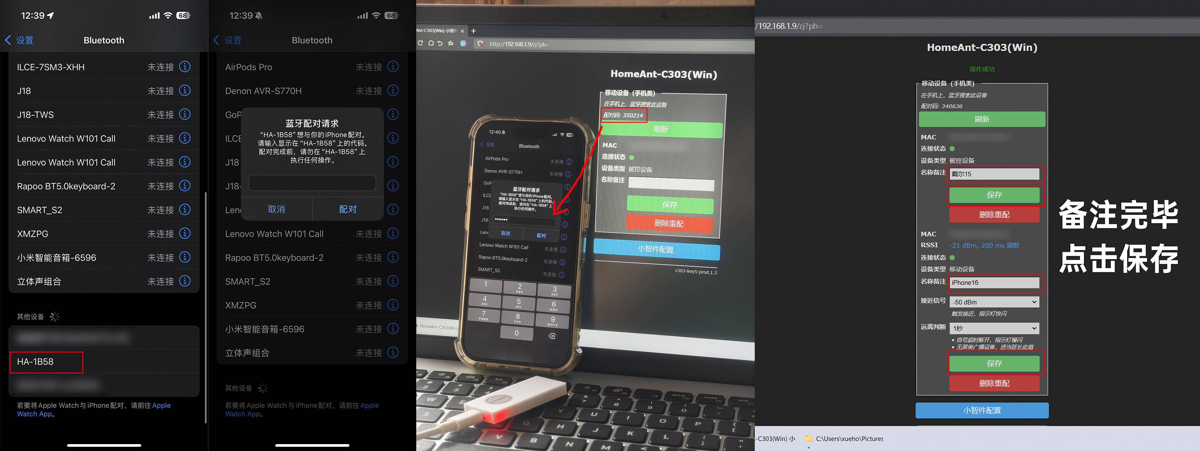 ▼当选择“移动设备(手机类)”并保存后,也会自动跳转到配对页面,把手机连上小智件蓝牙即可,连接完毕后还能为电脑或移动设备进行备注,方便辨认