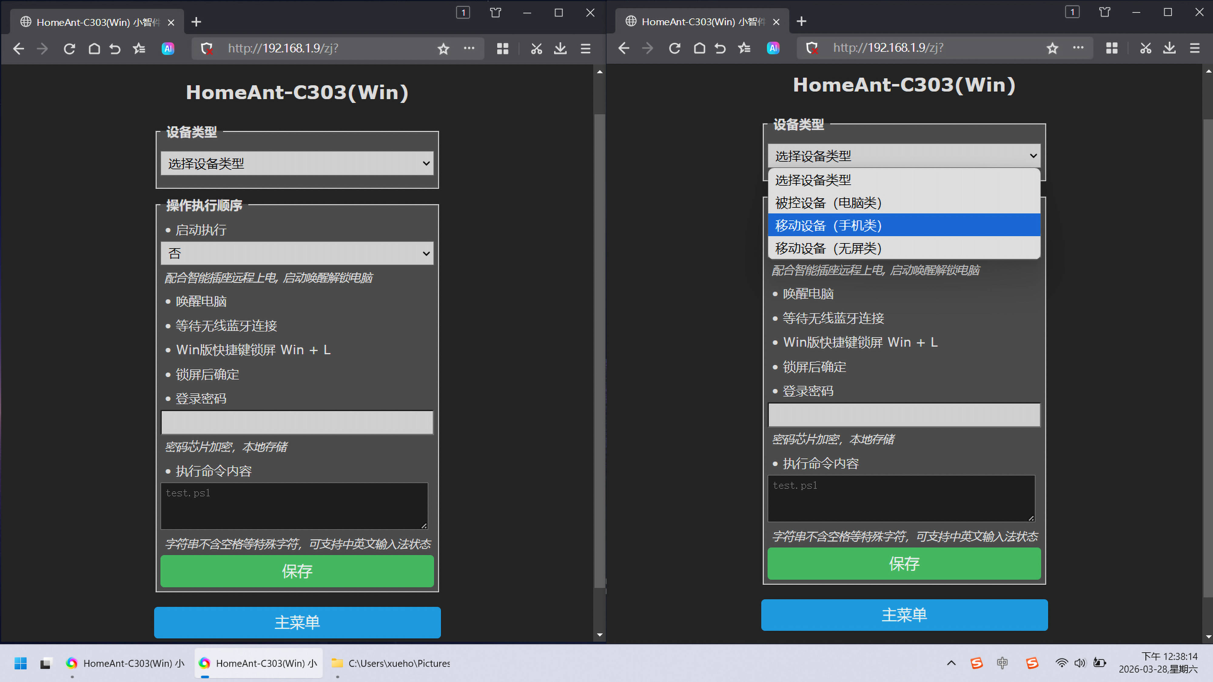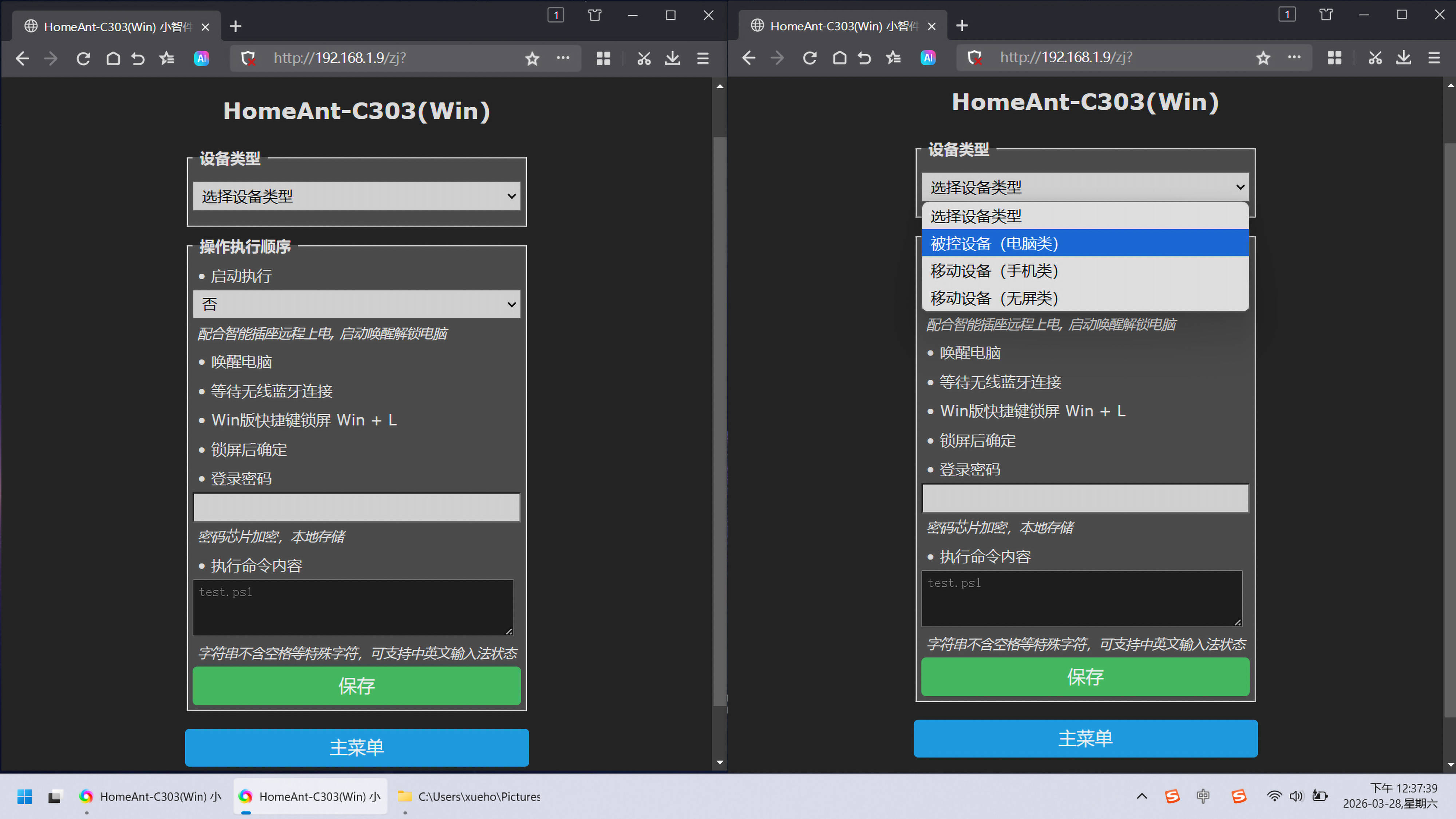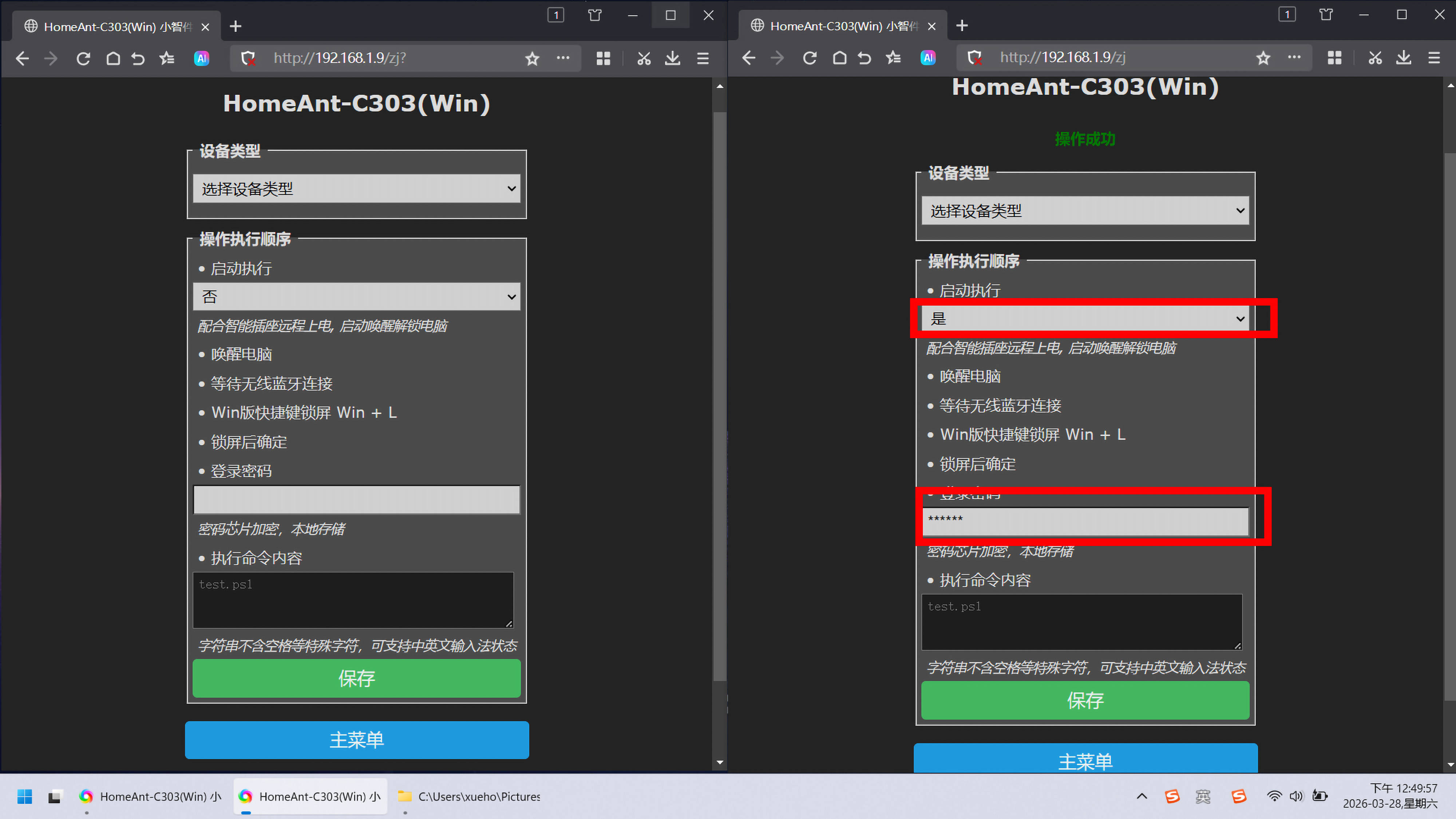 ▼触发靠近自动解锁的信号强度阈值设置好之后,进入“小智件配置”页,最后填入电脑解锁密码并保存即可完成所有配置,就能开始正式使用了(实际使用效果可以翻到最后查看);这里的“启动执行”,支持开机启动执行,方便用智能插座供电,可以远程唤醒解锁电脑,当然如果在公司使用,推荐保持默认选否,不需要开机启动唤醒解锁