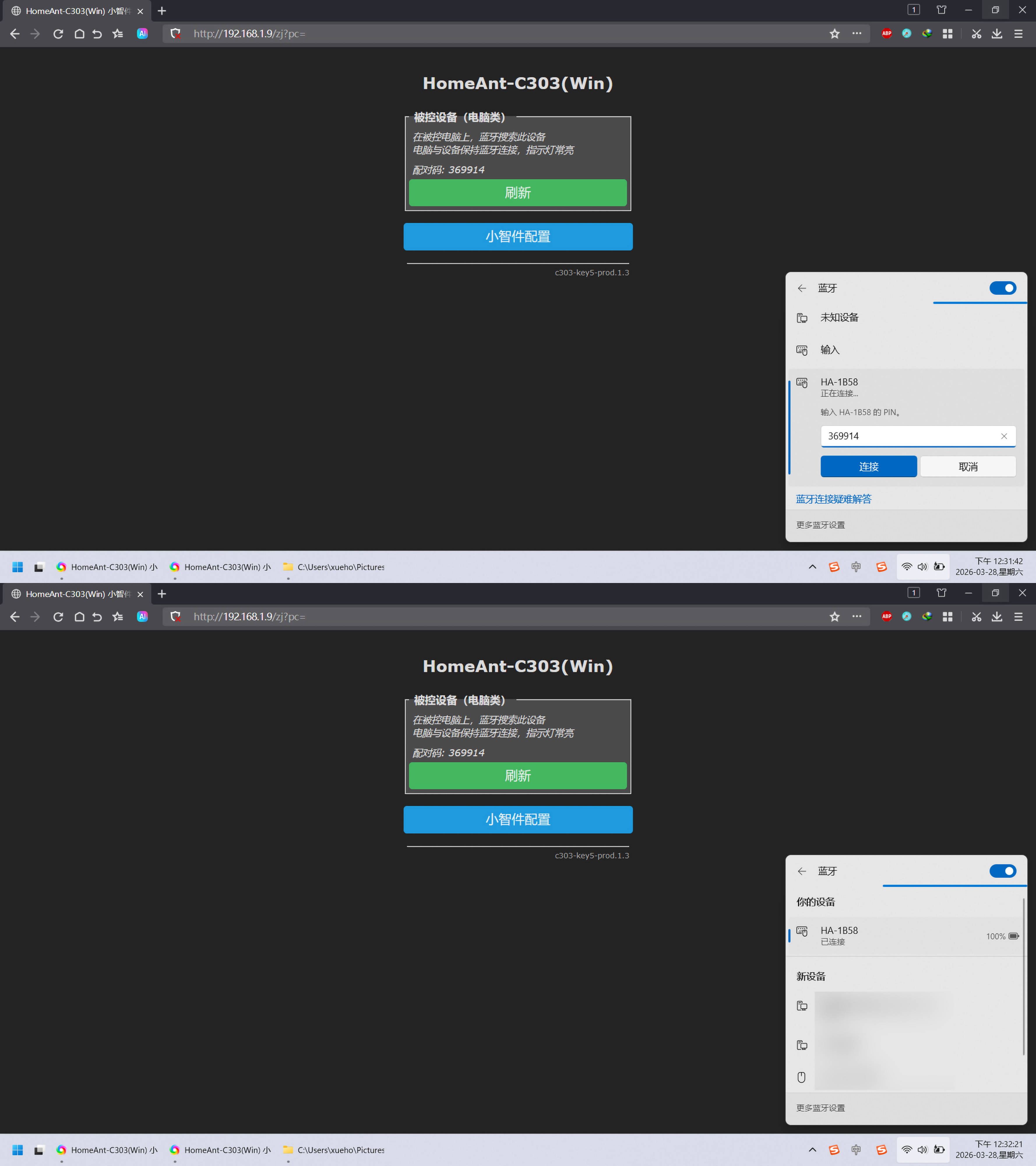 ▼电脑端配置完毕后,接着配置手机端,其实和配置电脑原理是一样的,也就是把手机连接小智件蓝牙