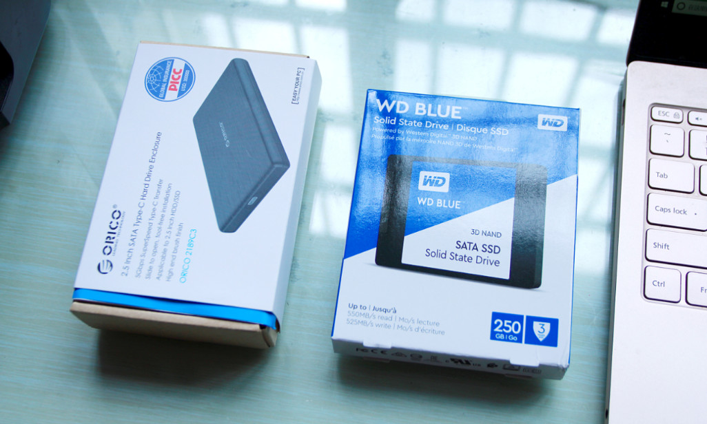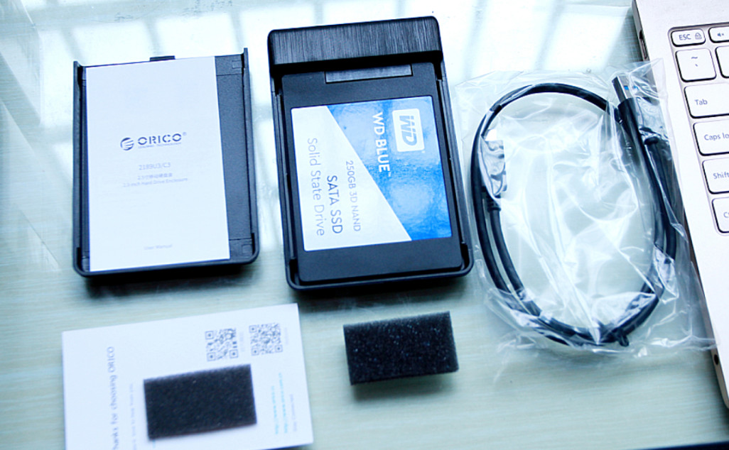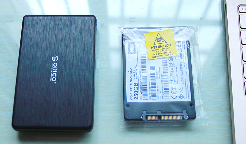 左:奥睿科硬盘盒;右:WD BLUE 250G 固态硬盘