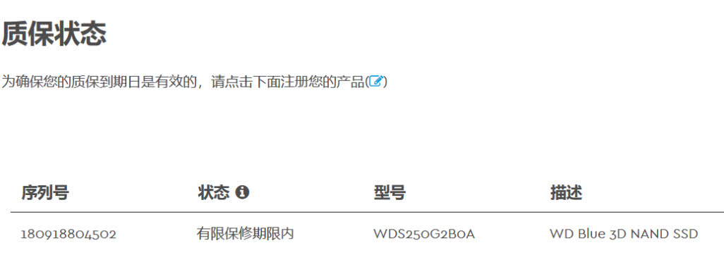 目前,西部数据的BLUE系列的SSD硬盘质保期已经从3年延长至5年,可以上官网输入序列号进行查询,笔者顺手查询了下,手上这款的质保期到2023年,不错。