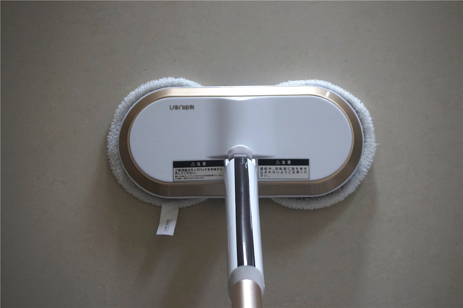 由利电动拖把跟普通拖把的长度基本一致,拖把杆由于是铝合金材质的,使用更轻巧。由利电动拖把分为干拖与湿拖。如果干拖,充一次电可以使用120分钟左右,如果湿拖,由于拖布重量增加,电机负荷加大,所以充一次电大约能使用90分钟,不过完成清洁卫生是没问题的。