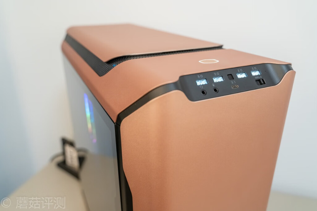 酷冷至尊这款SL600M金色版机箱还是非常漂亮的,机箱外面大面积的使用了金色铝合金材质,颜值很高,质感也很棒。机箱的用料和做工也很优秀,铝合金材质内部都是塑料的骨架,固定螺丝很多,卡扣和限位柱也很粗壮;机箱内部各处都很硬朗,骨架很结实,丝毫不晃;另外在一些走线接口部分有橡胶材质包裹,防止划伤手和线材,很贴心。