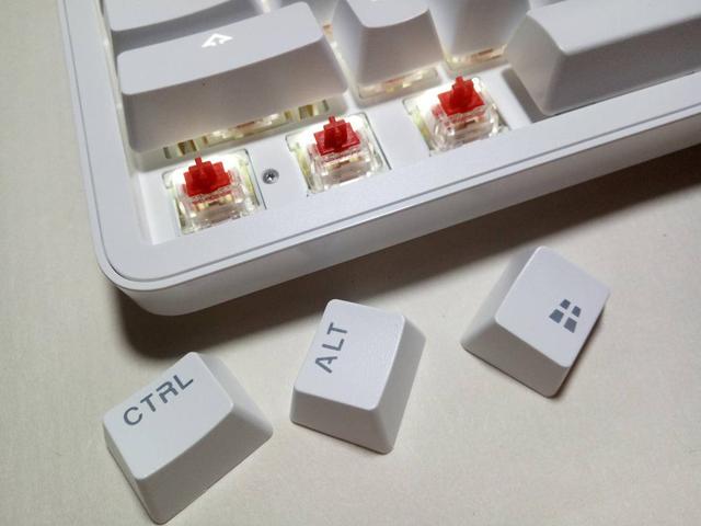 雷柏MT710办公背光机械键盘分别有黑轴、青轴、茶轴以及红轴4款轴体,用户可以根据自己使用场景选择适合的。这次入手的是红轴,外观是看不出来的,需要用拔键器取下键帽,就可以看到里面的红轴轴体和背光灯珠,可见该键盘还带有背光功能。