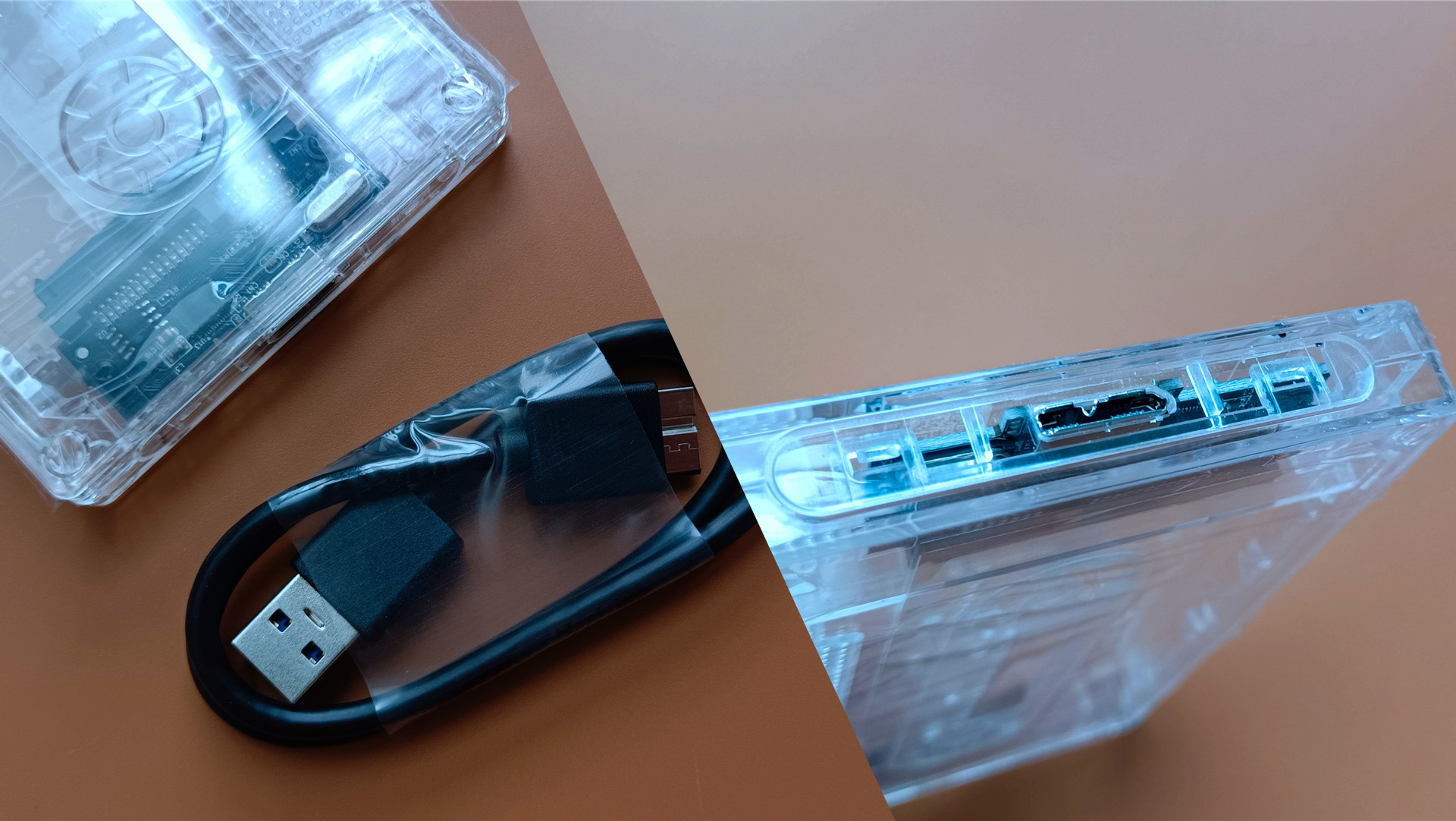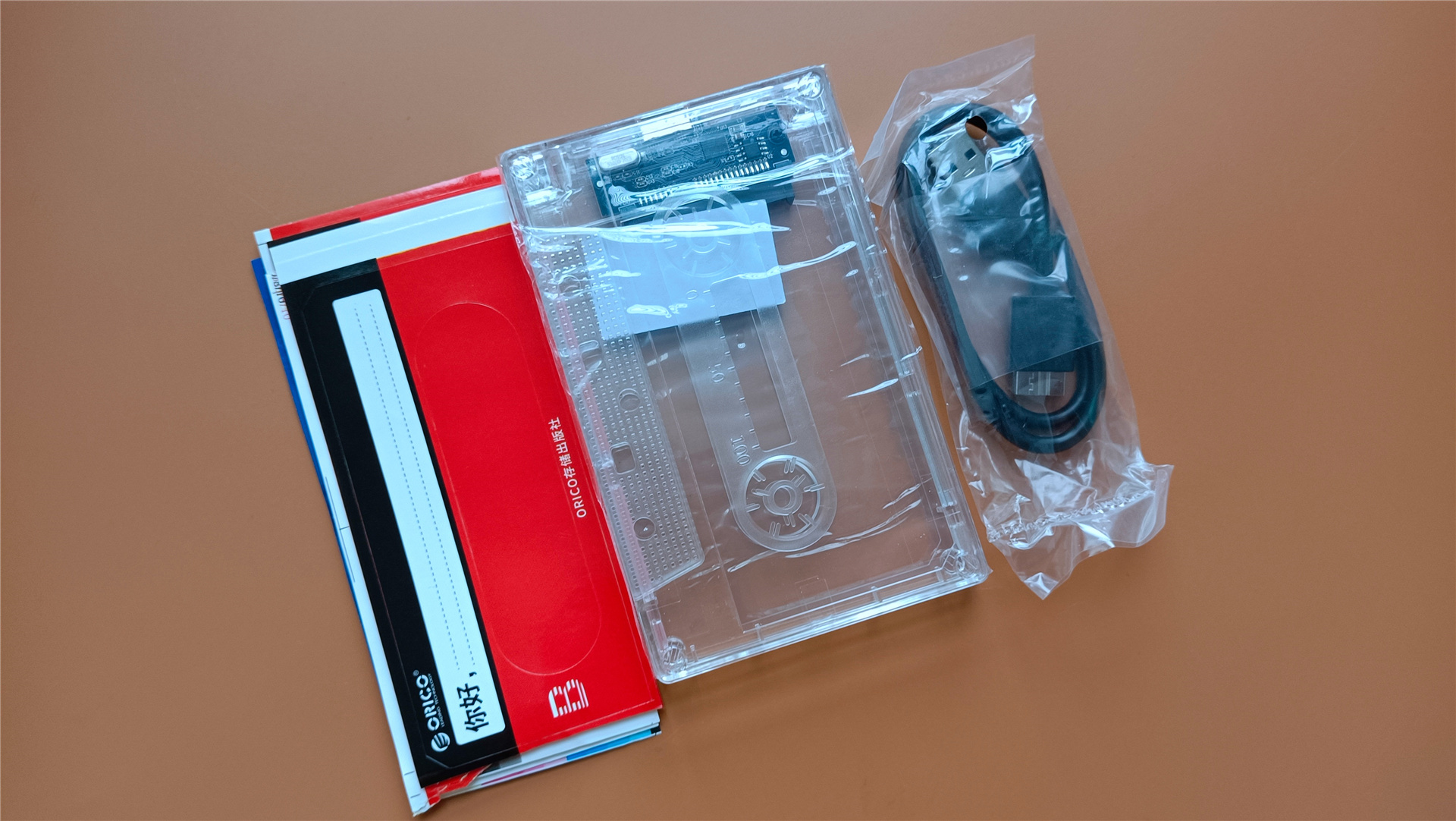 ORICO磁带硬盘盒配件包含硬盘盒主体、数据线及硬盘盒贴纸。