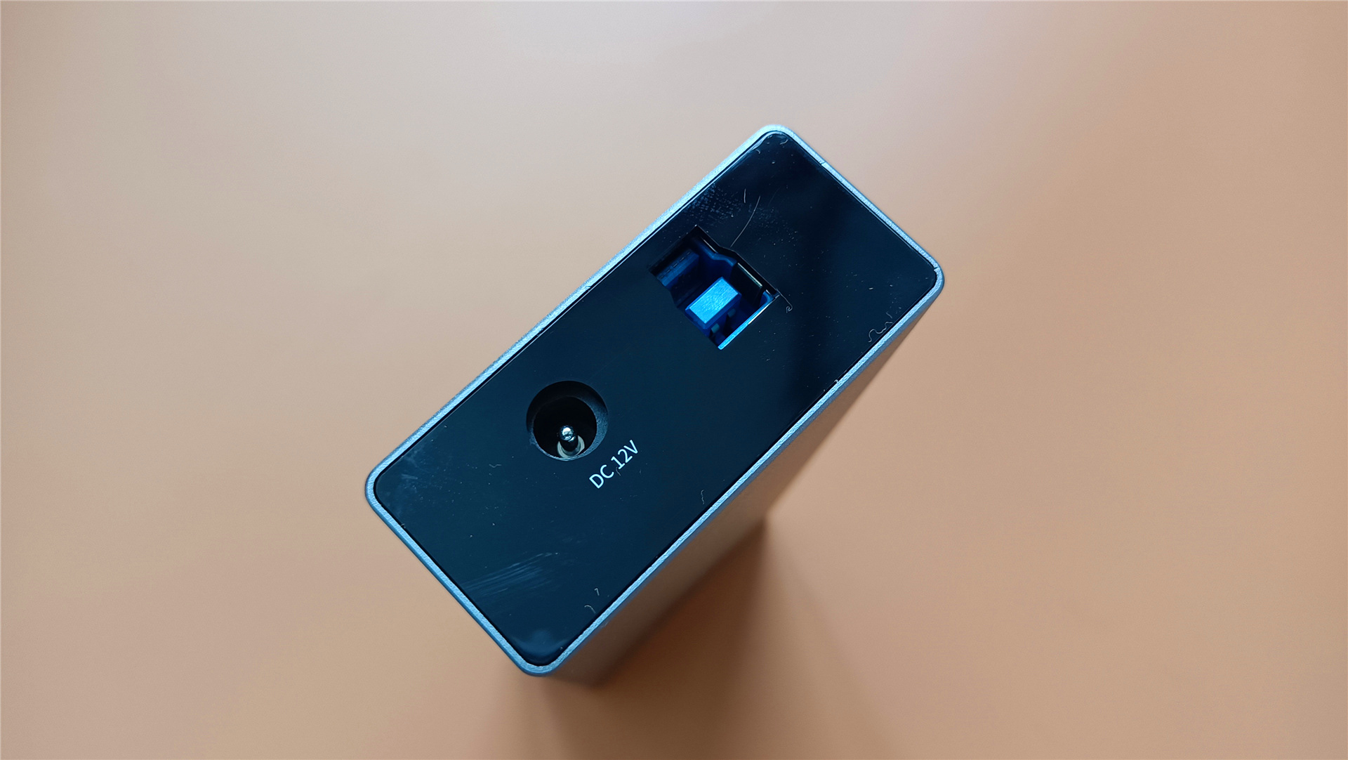 ORICO多口USB3.0 扩展器侧面是产品的输入接口,一个电源接口和一个Type-B数据接口。扩展器采用12VDC供电,保证了数据传输稳定及设备供电稳定。