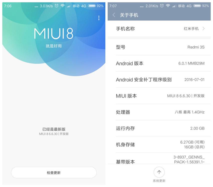 ▼红米3S使用的依旧是小米主流的手机操作系统--MIUI系统,可以直接刷开发版的MIUI8,抢先体现MIUI8新科技。