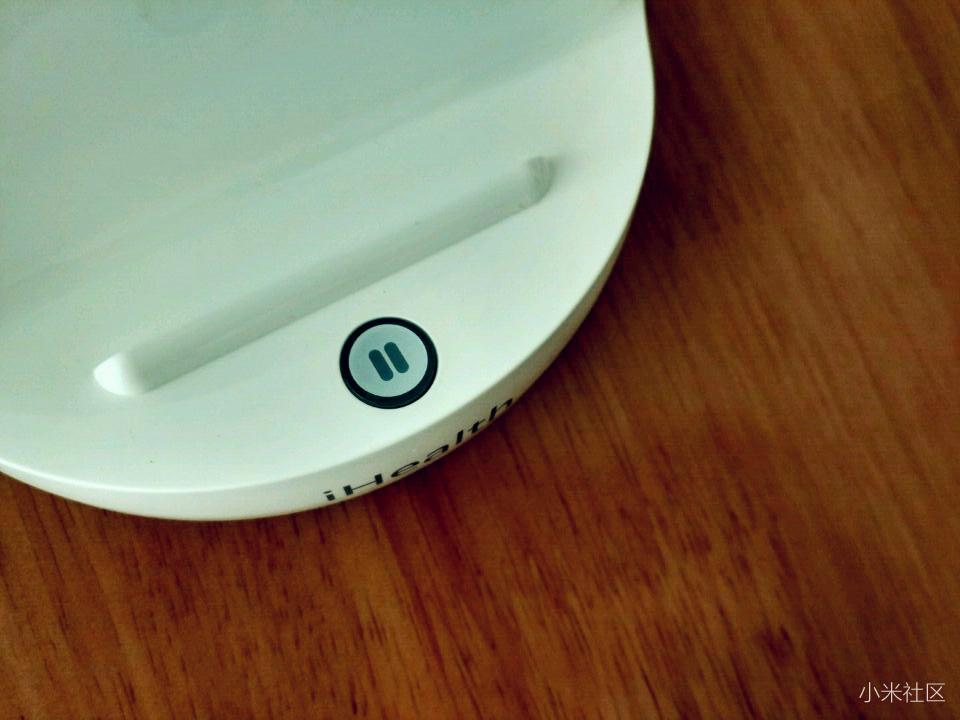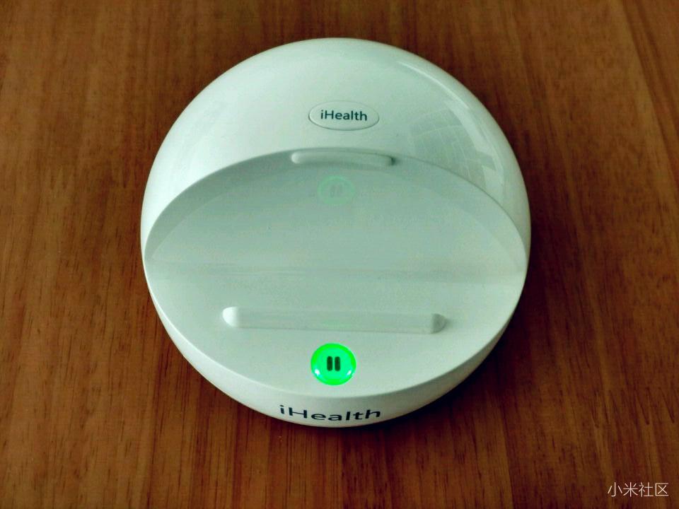 ▼iHealth智能血压计主机正面有指示灯,在主机开机或者测量师指示灯常亮;另外主机的凹面有个凸起的卡条,可以将手机固定,放在iHealth智能血压计上,很便捷。