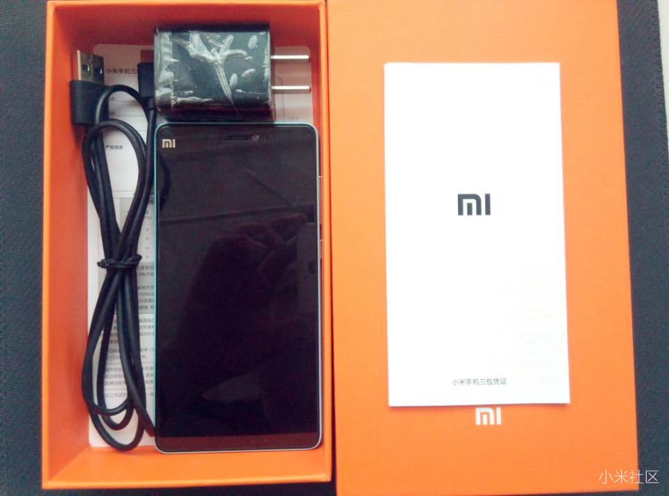 ▼晒晒全家福,小米4c包括裸机一部,一个充电头,一个数据线,还有保修卡