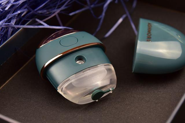 ▲实际上它是加入了超声波雾化功能,上图中间的小孔就是喷雾孔。使用时如上图下滑后盖露出喷雾孔,再按一下多功能键,它就会有5秒的喷雾时间。