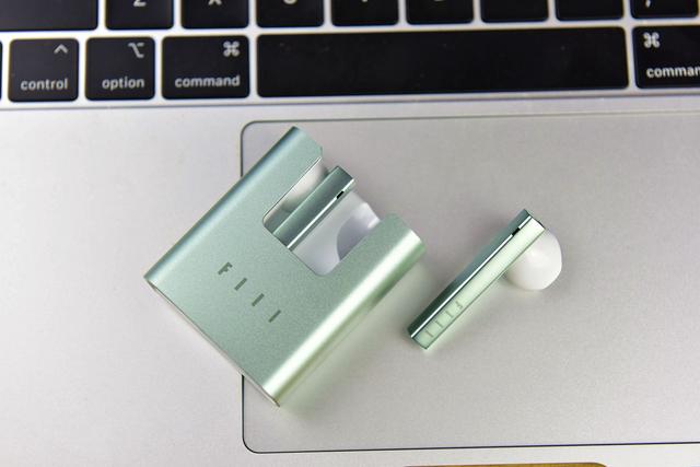 FIIL CC有着精致小巧的外观以及同样精致且别出心裁的收纳盒,不过你细看腔体外观其实就是苹果配塞加了一根方形的尾巴,就这么一个小设计让它拥有了超舒适的佩戴感和时尚感。