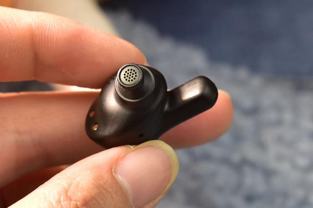 ▲腔体侧面展示,各位会注意到它腔体上有不少小孔,其实是各有两个麦克风,虽无主动降噪功能,但有通话降噪功能;