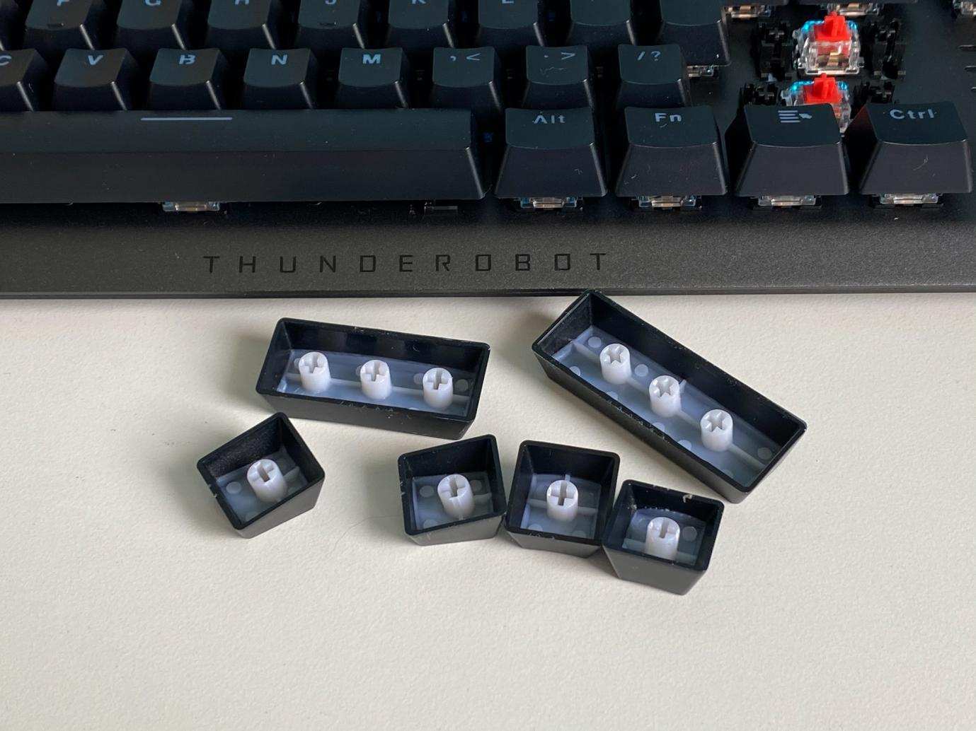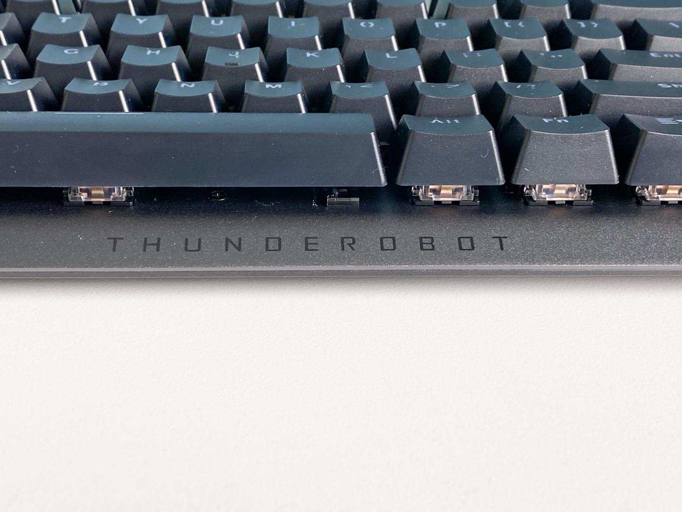 按键下面是整层的铝合金板材,CNC精细加工,磨砂金属光泽,摸上去冷酷的手感。上面有T**DEROBOT的雷神英文字样。