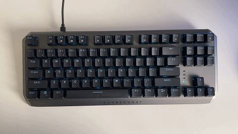 雷神这款游戏键盘是单色光的,这个蓝色还是比较好看的,不刺眼,同时有着神秘的感觉。而且可以通过快捷组合键调节亮度大小,共有四档亮度可调,很是方便。