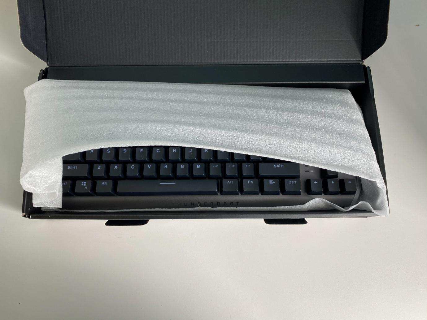什么键盘看上去这么不错呢?这个就是雷神最新的玄龙双模**械键盘。泡沫包裹,防护得当,来开始看看这款游戏键盘到底如何。