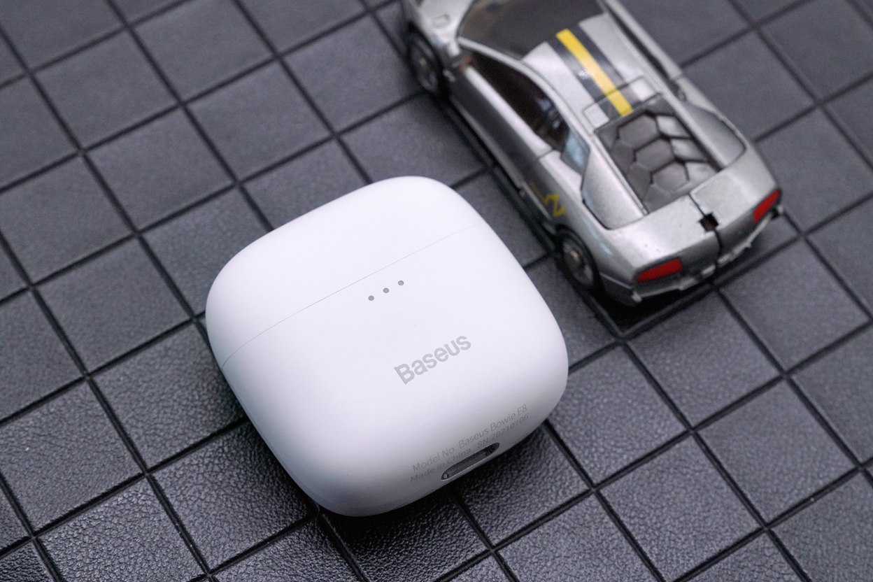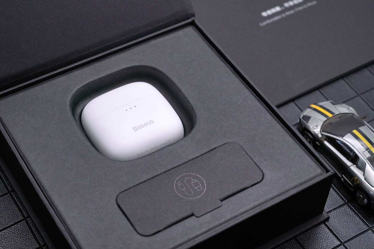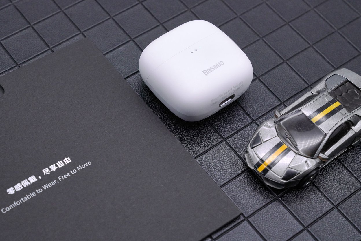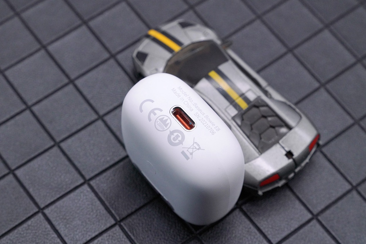 倍思Bowie E8拥有黑、白、粉三款配色,我拿到的是白色,耳机下方的配件盒内附送了一根TypeC充电线。