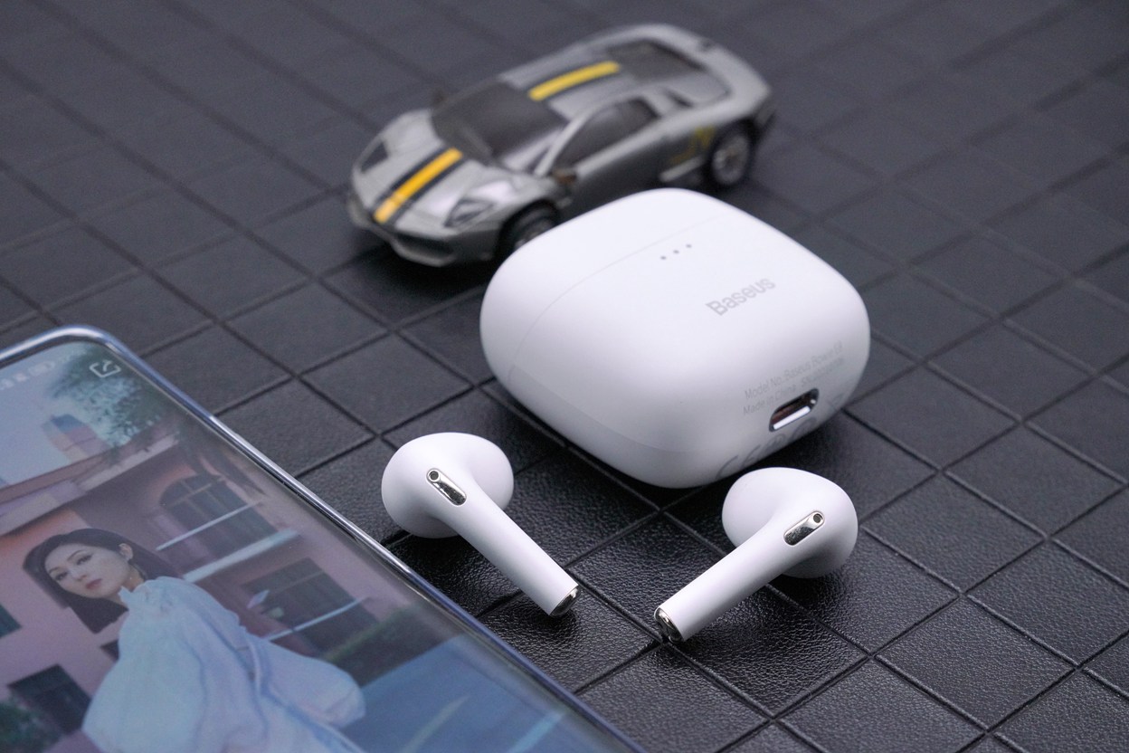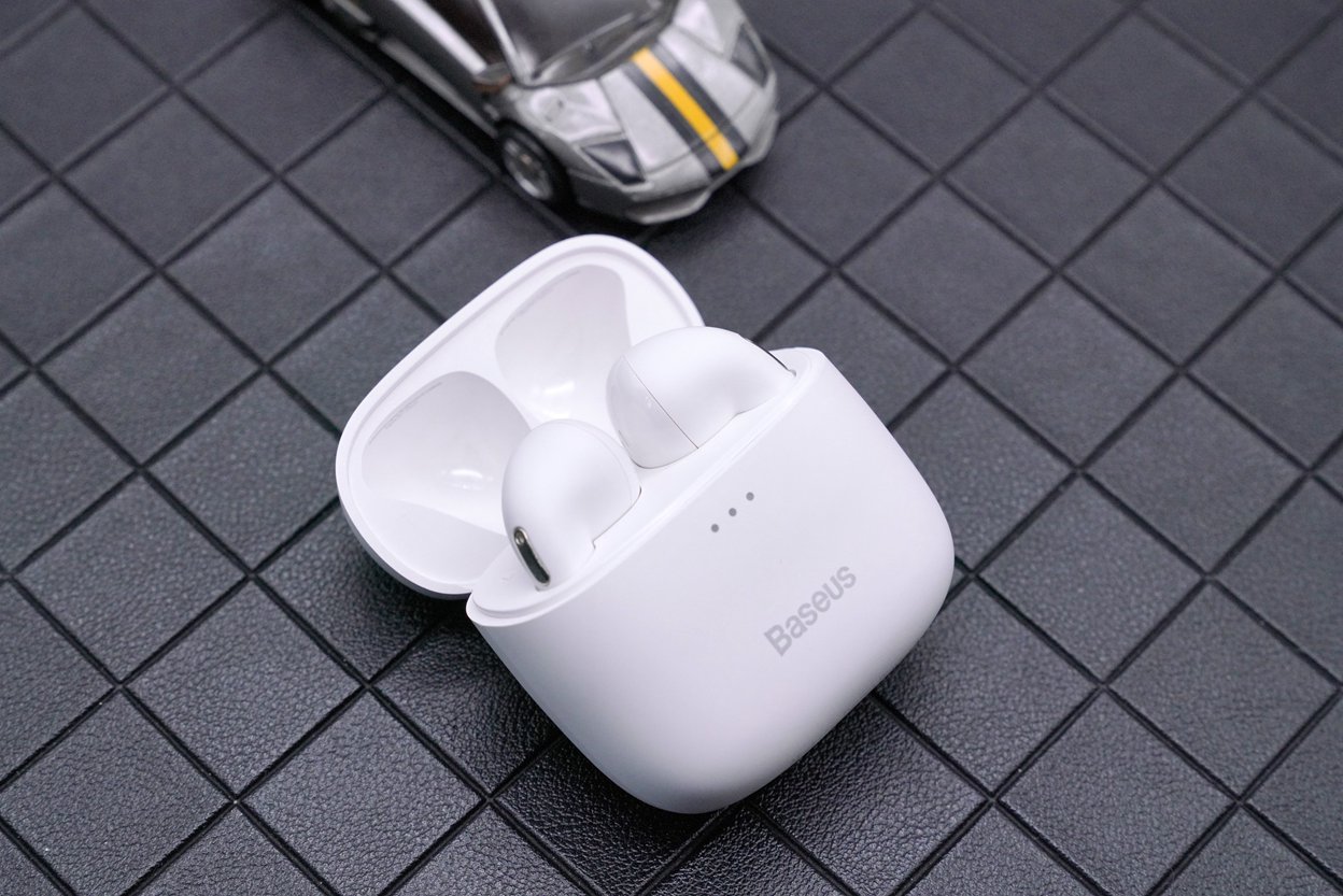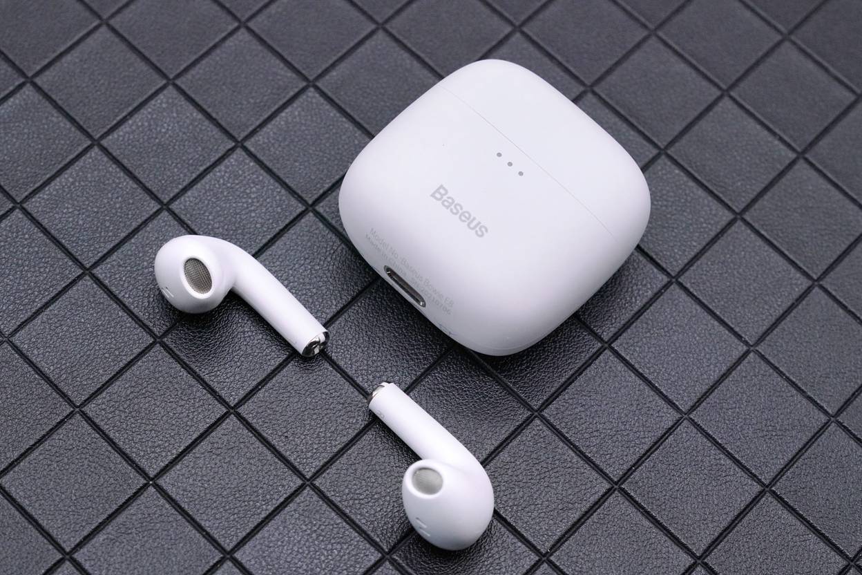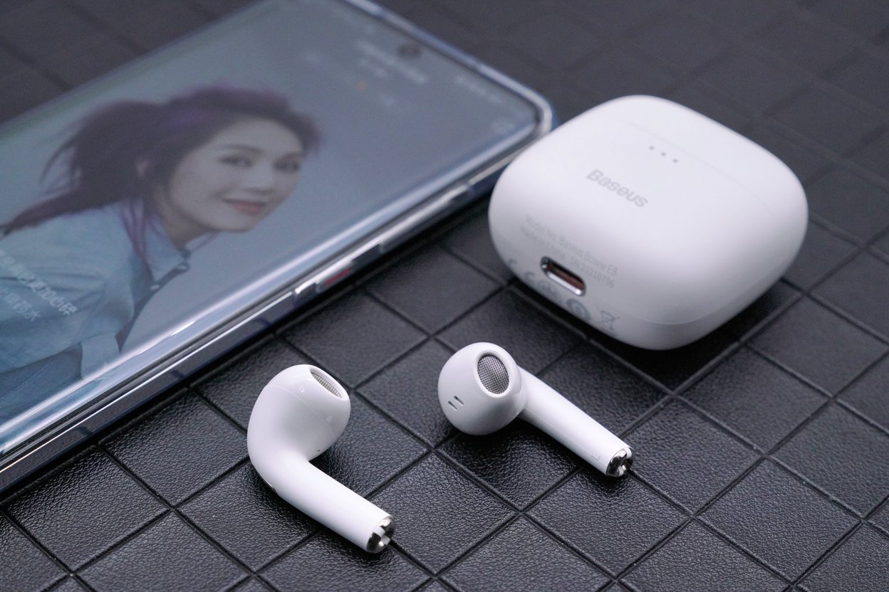 倍思Bowie E8拥有黑、白、粉三款配色,我拿到的是白色,耳机下方的配件盒内附送了一根TypeC充电线。