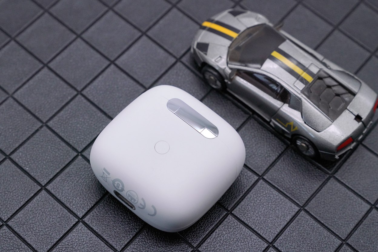 耳机采用了磁吸设计正向放置在充电盒中,角度设计合理,拿取十分轻松。霍尔开关的加入,在首次连接成功后,开盖无需取出耳机即可自动连接,相当方便。