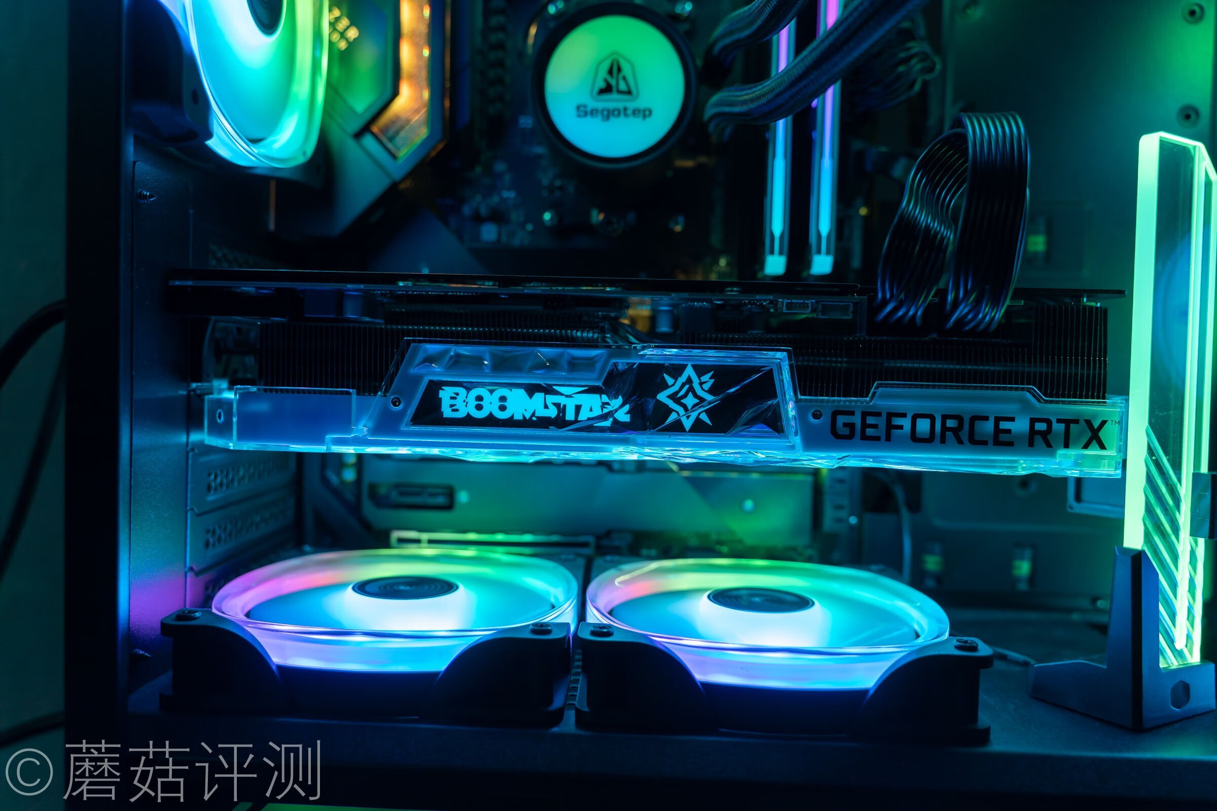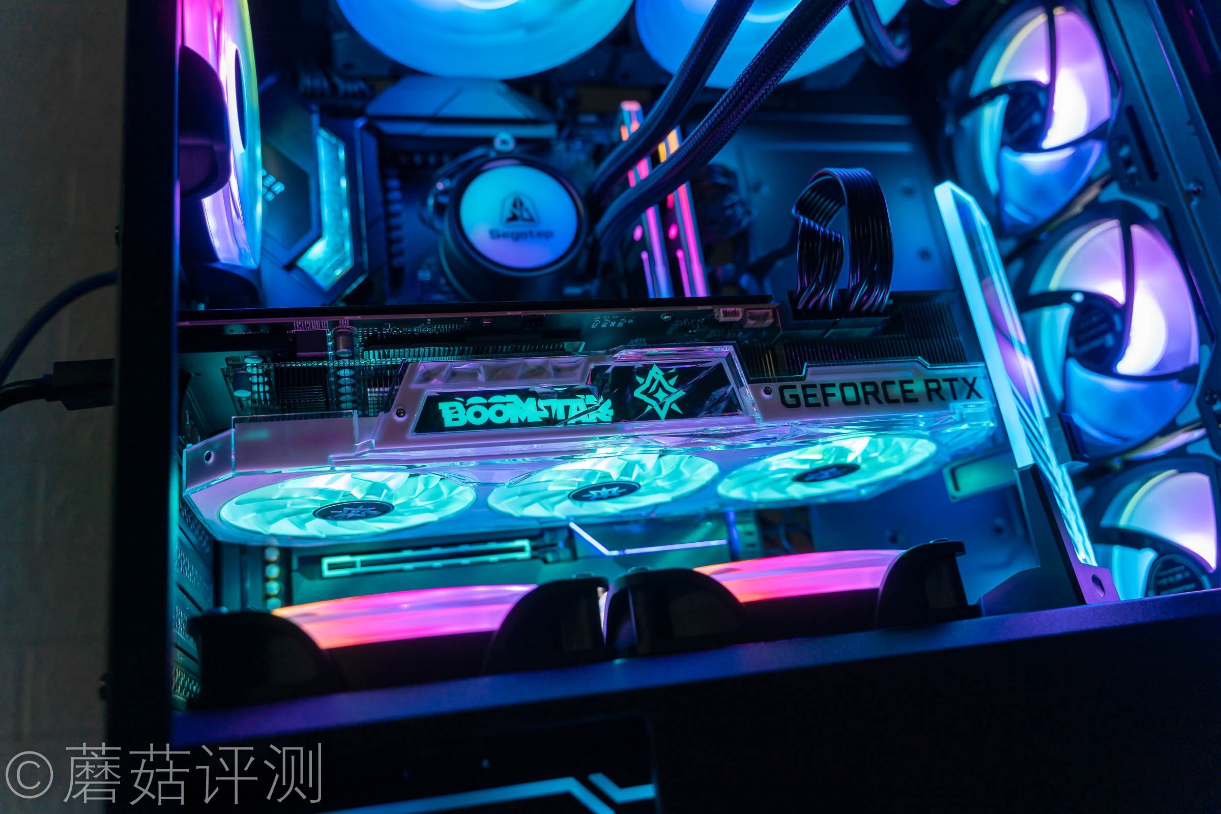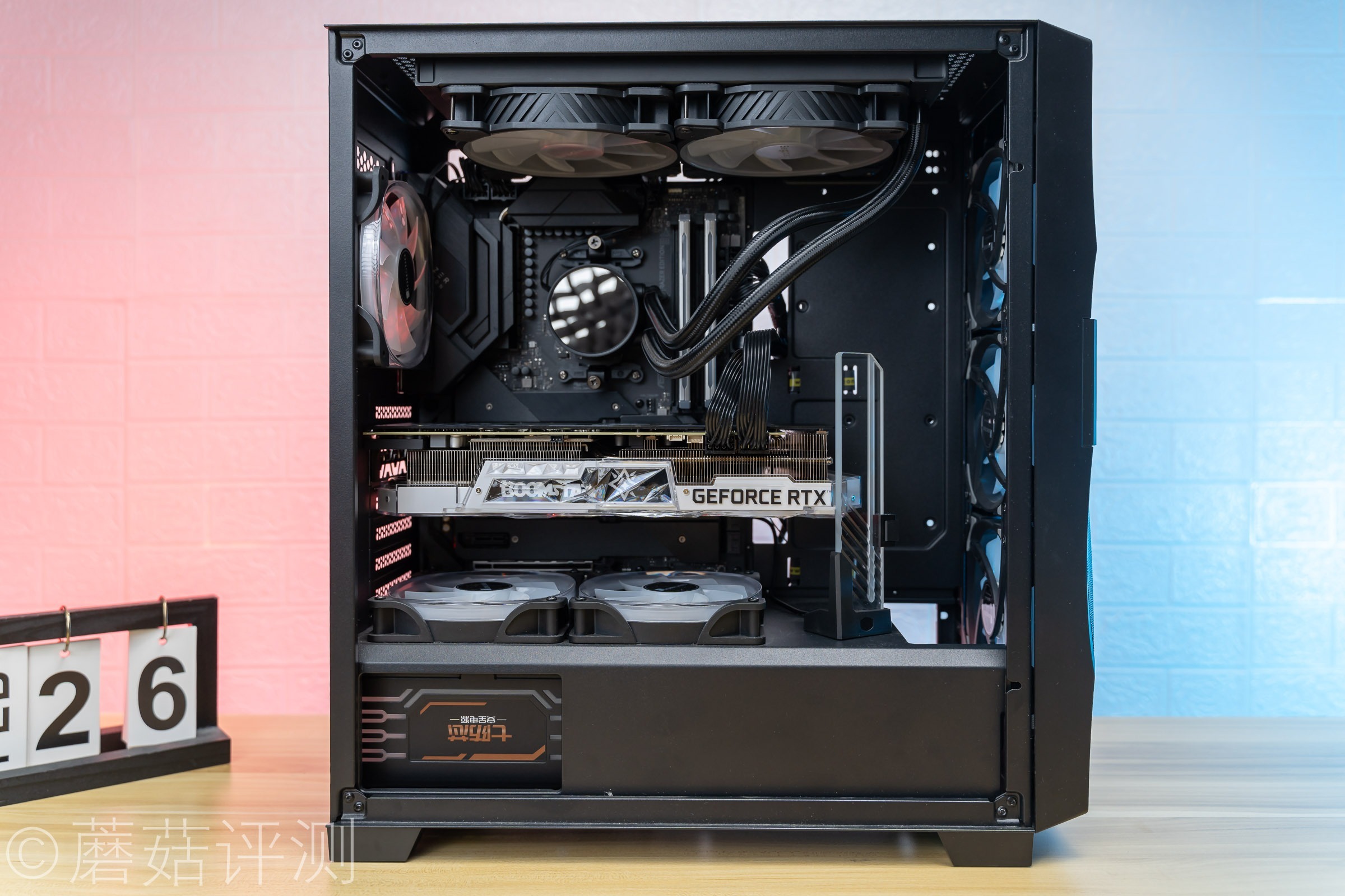 ▼显卡可以轻松的水平安装,记得要在显卡的尾部装一个显卡支架哦,蘑菇这里选了一个好看的。
