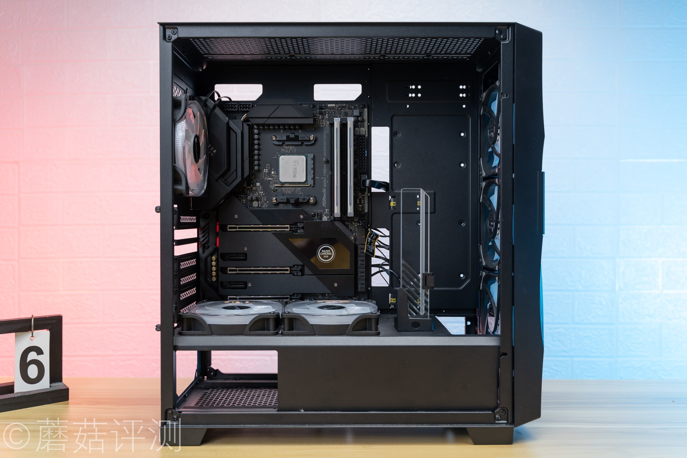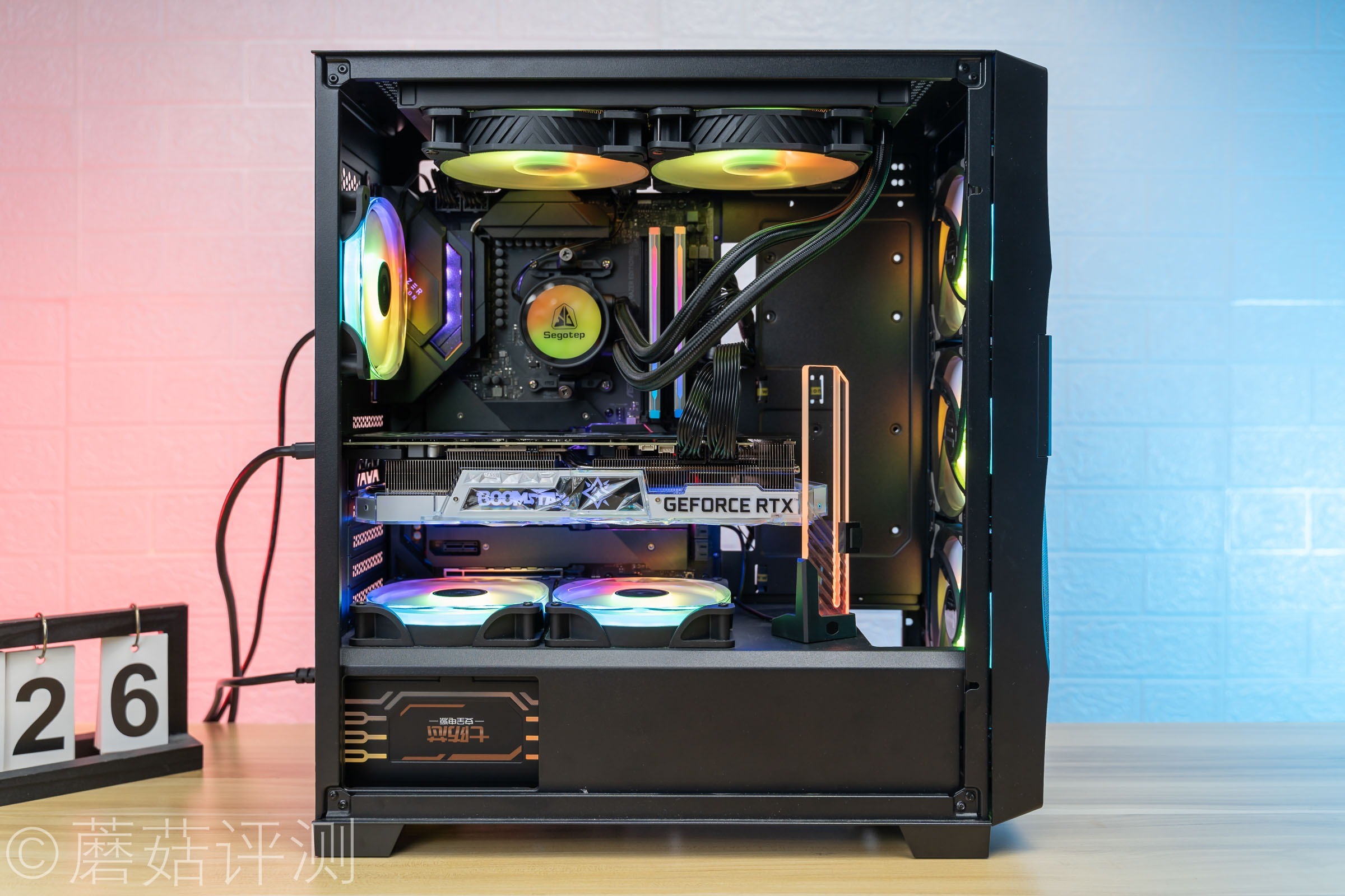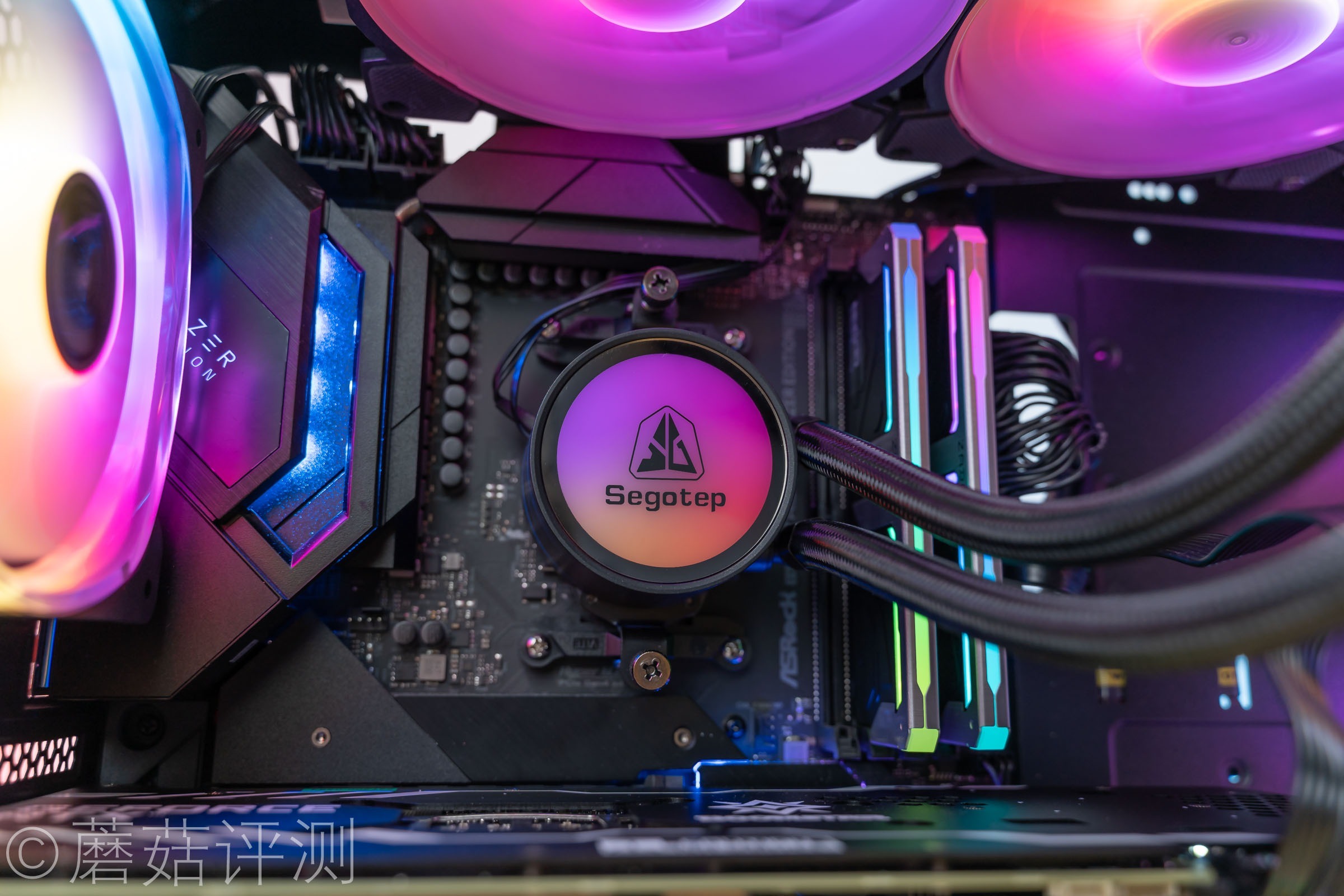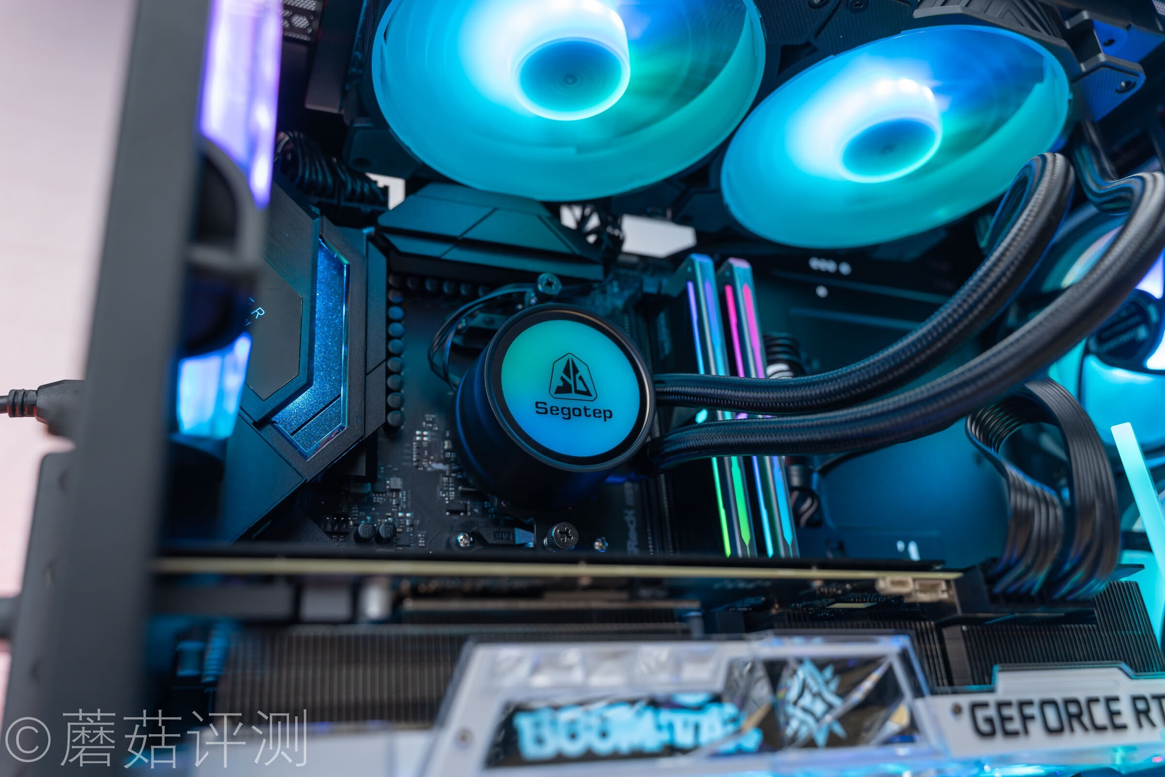 ▼显卡可以轻松的水平安装,记得要在显卡的尾部装一个显卡支架哦,蘑菇这里选了一个好看的。