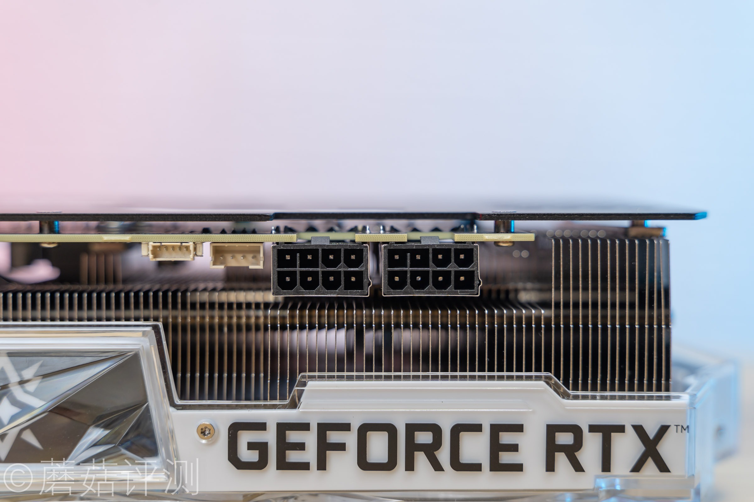 ▼显卡尾部有两个8Pin的辅助供电插口,双8Pin供电对RTX3070Ti来说,还是很必要的。