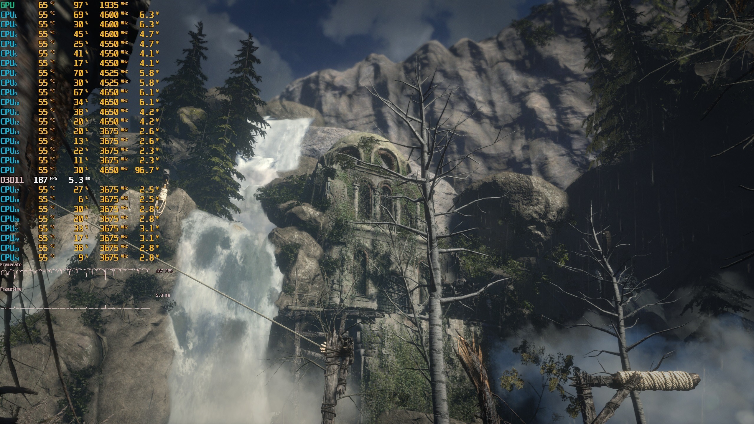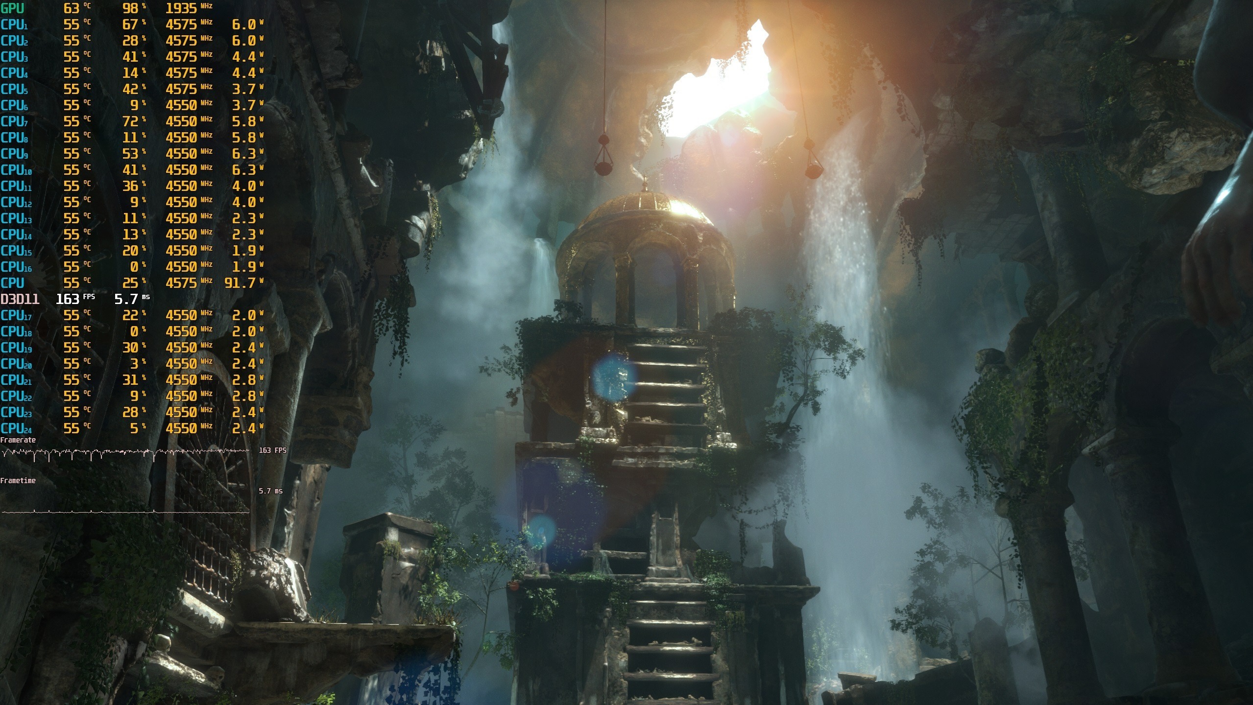 ▼古墓丽影**,2K分辨率,全高画质,第二个**场景,游戏帧数在163帧左右。