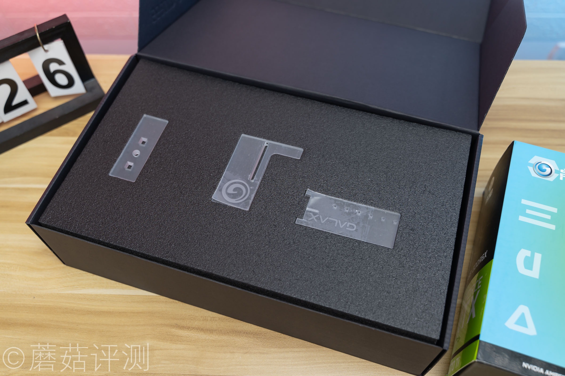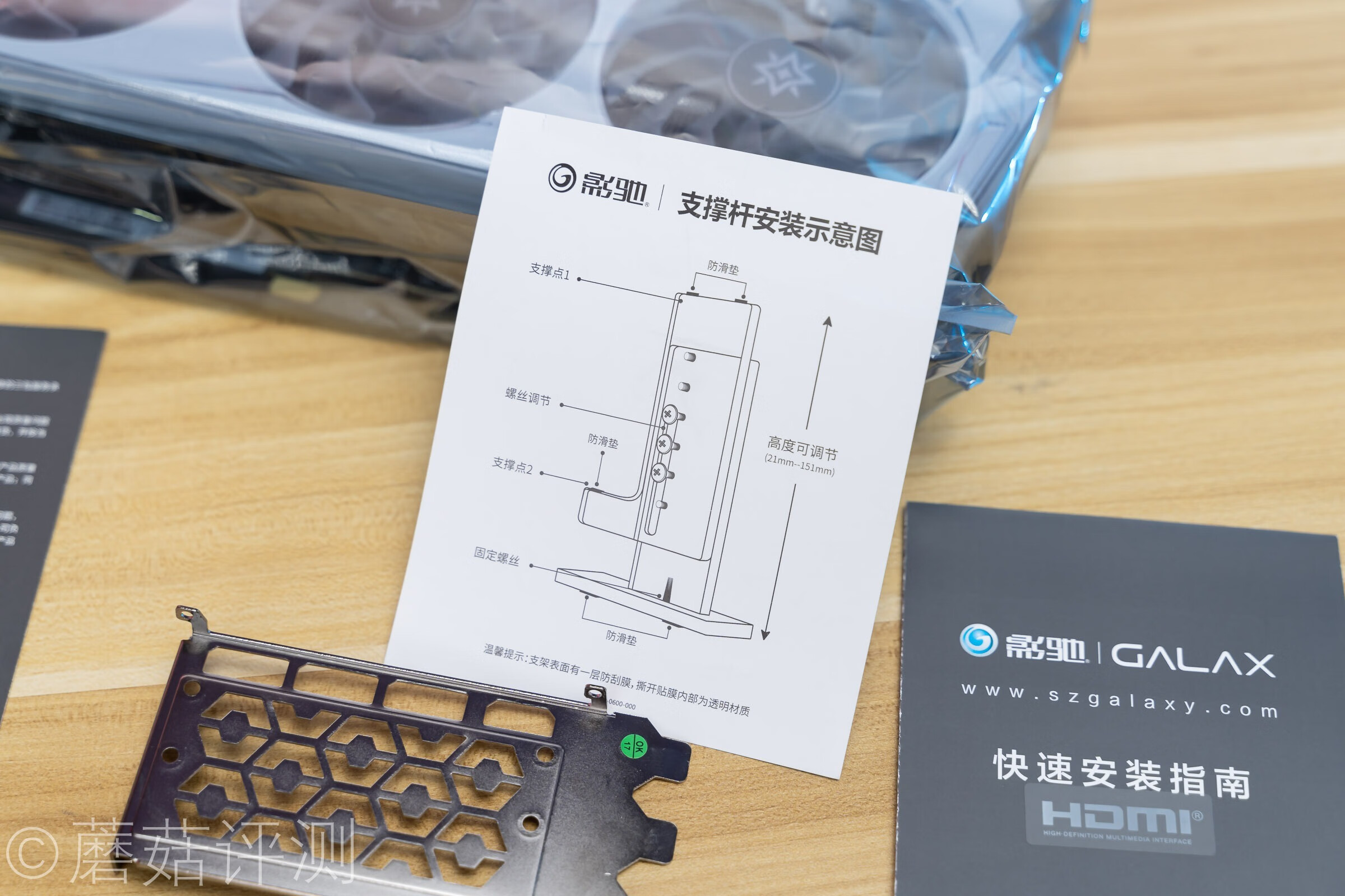 ▼打开包装,显卡默认配备的显卡支架配件,好评!
