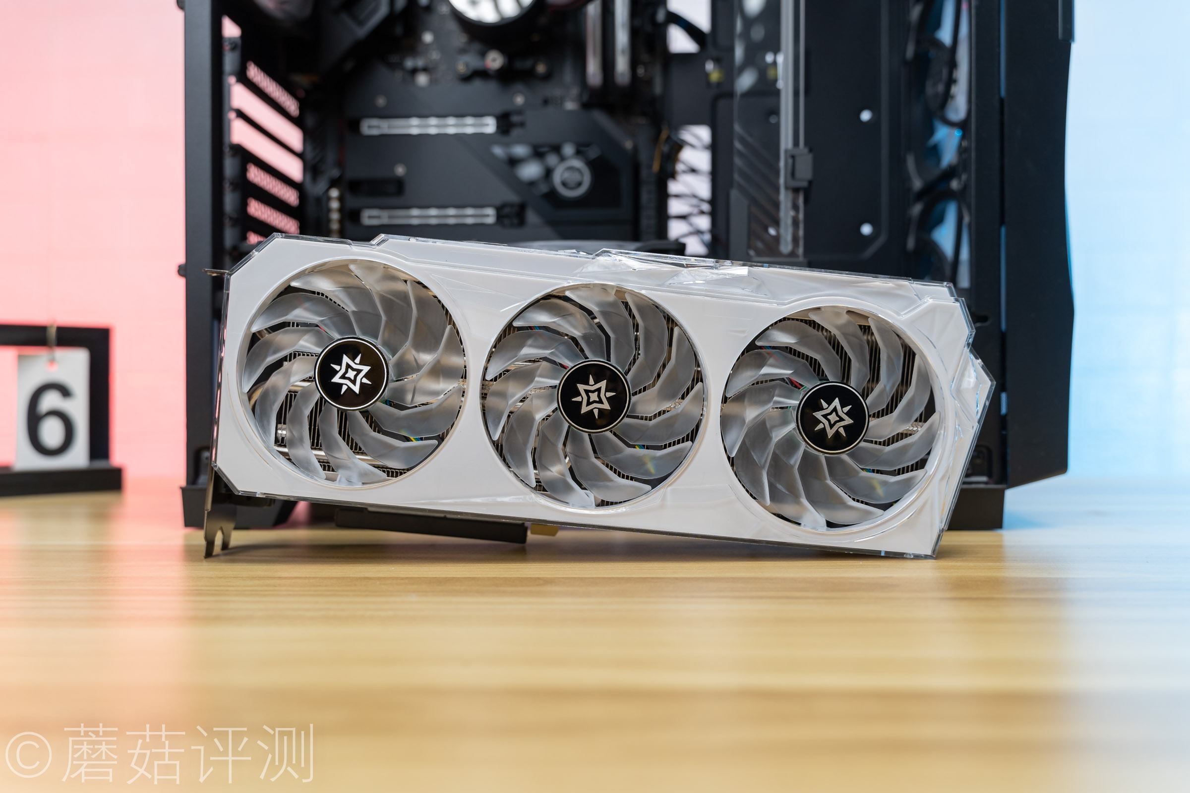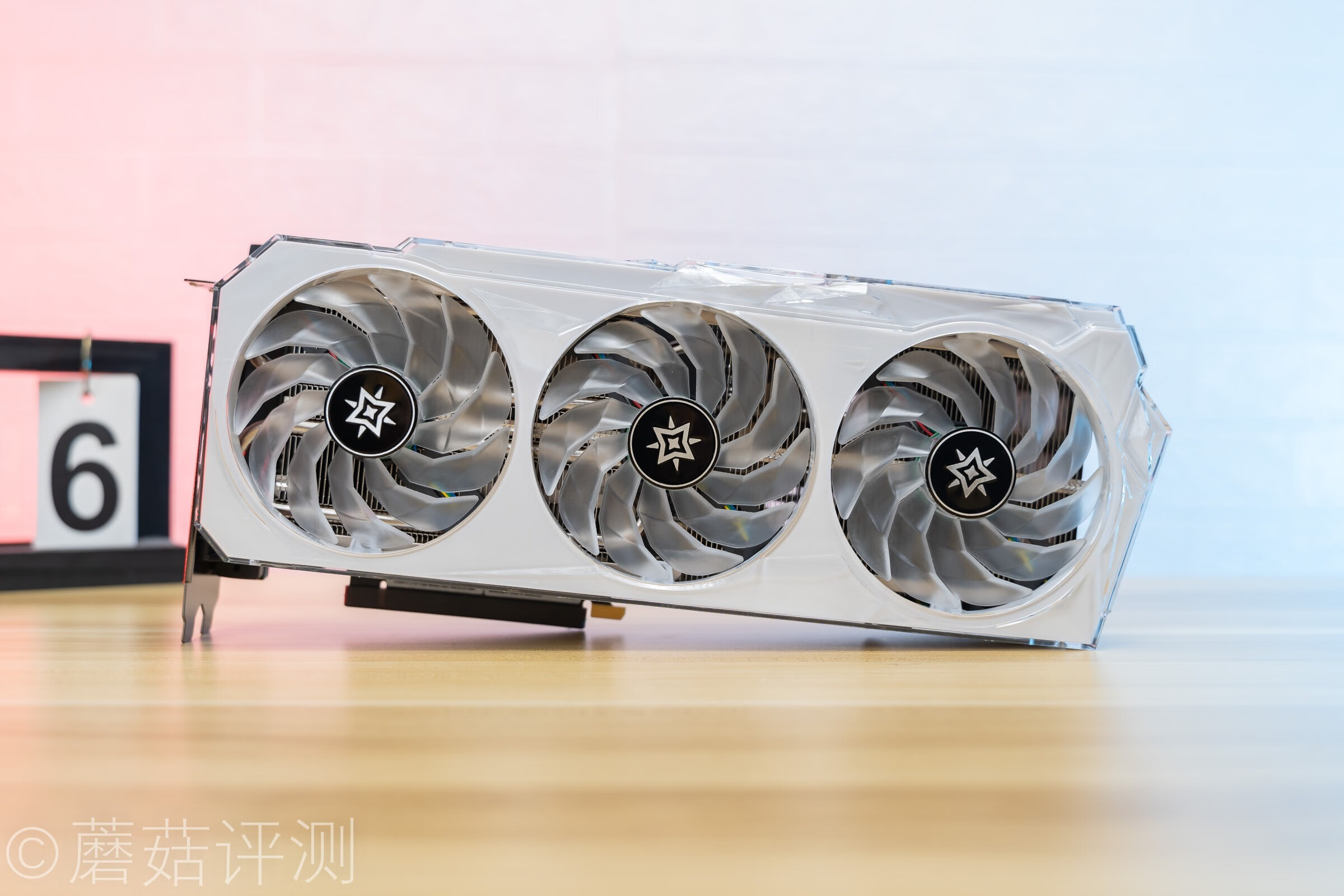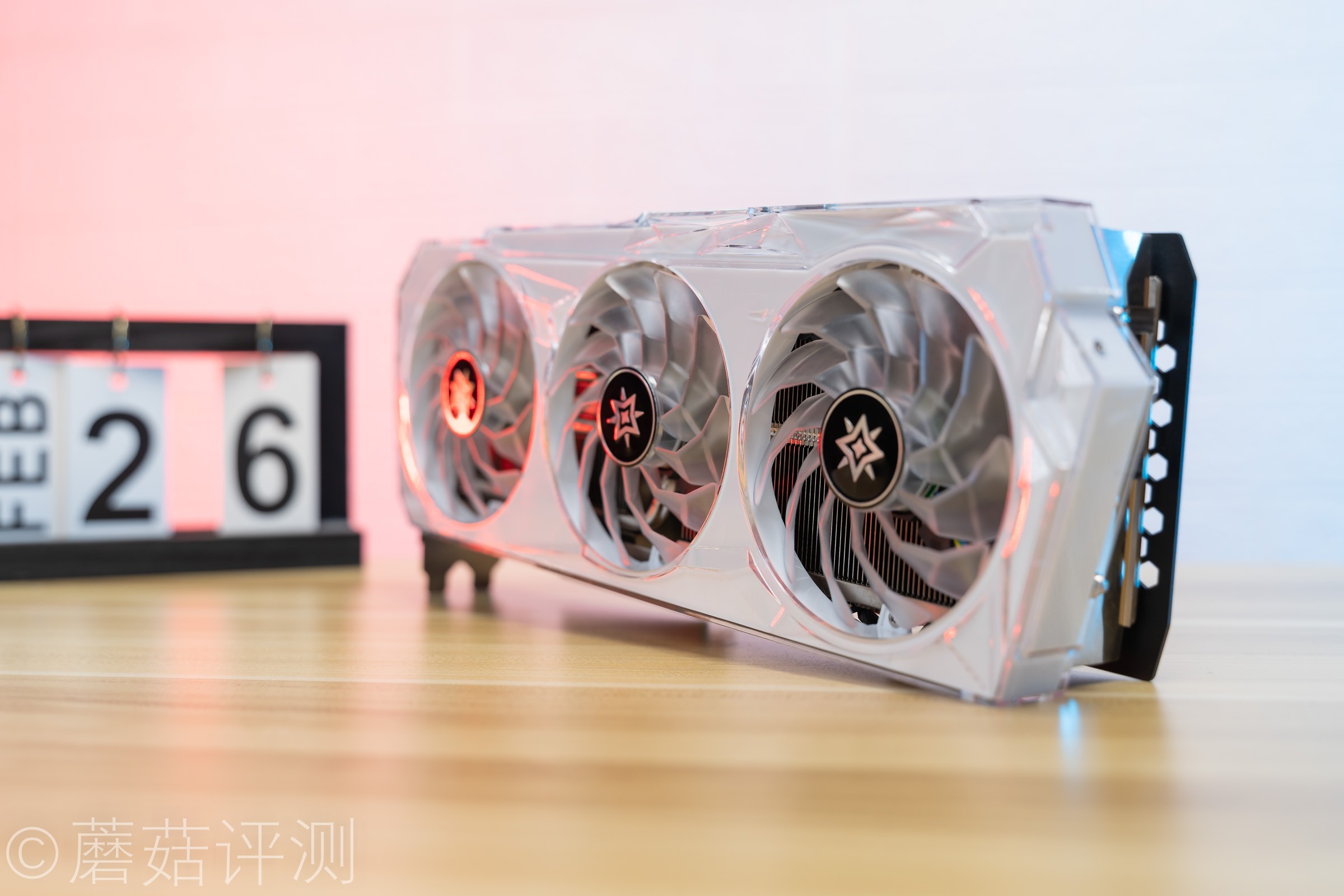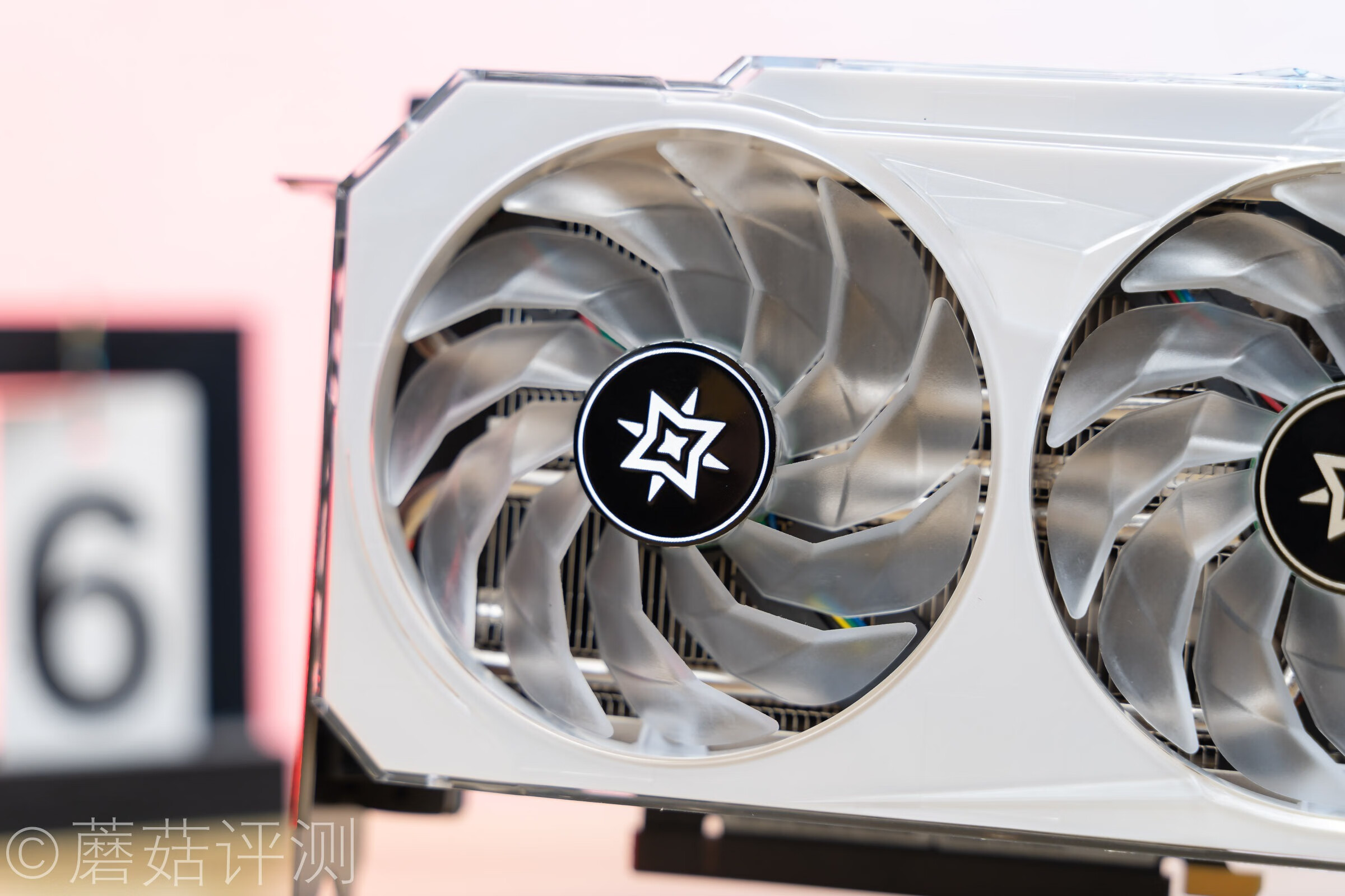▼另外显卡的风扇部分是有灯效的,乳白色的扇叶也有柔光效果。