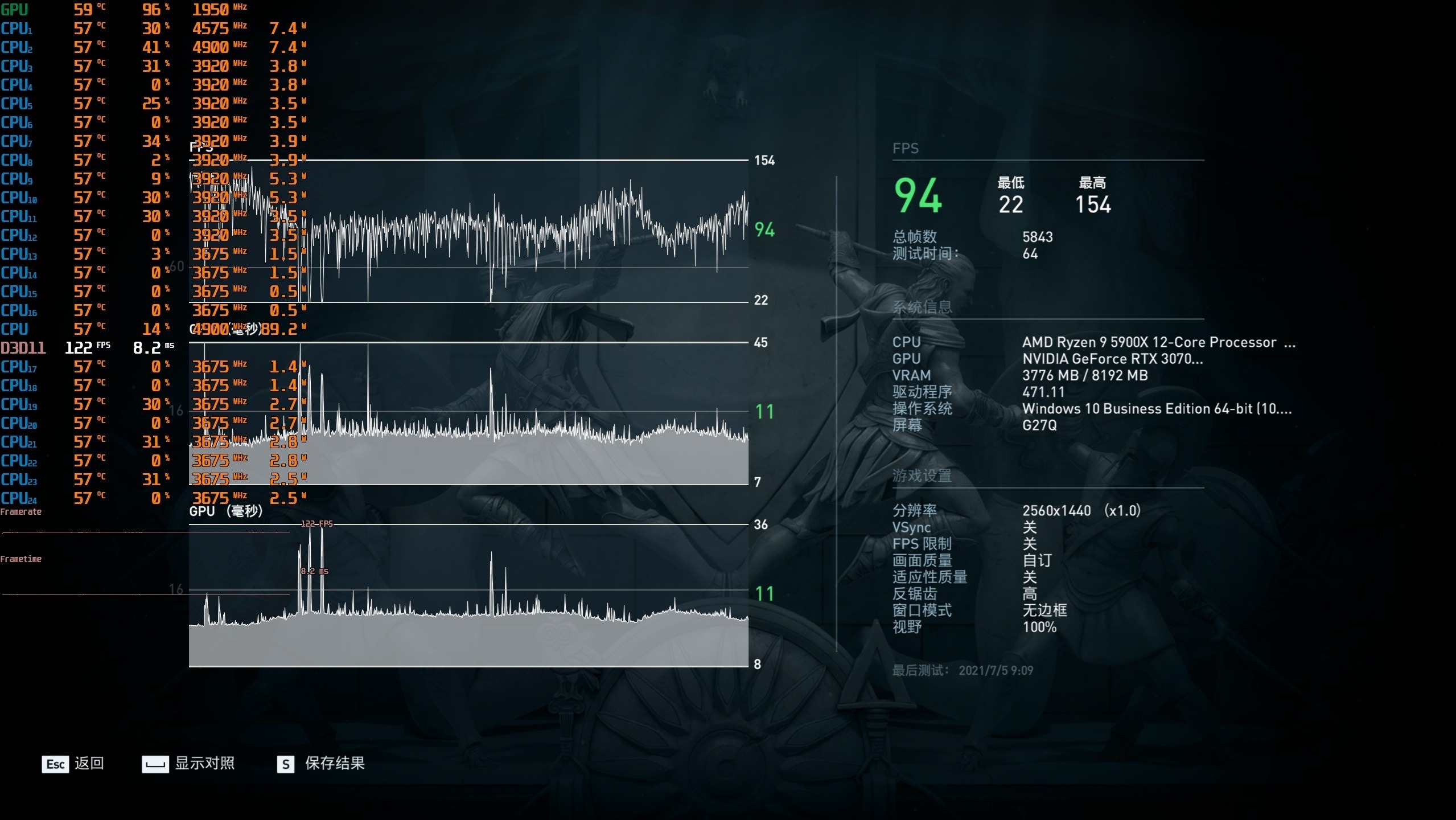 ▼最后的平均帧数在94帧左右,平时玩还是非常流畅的。