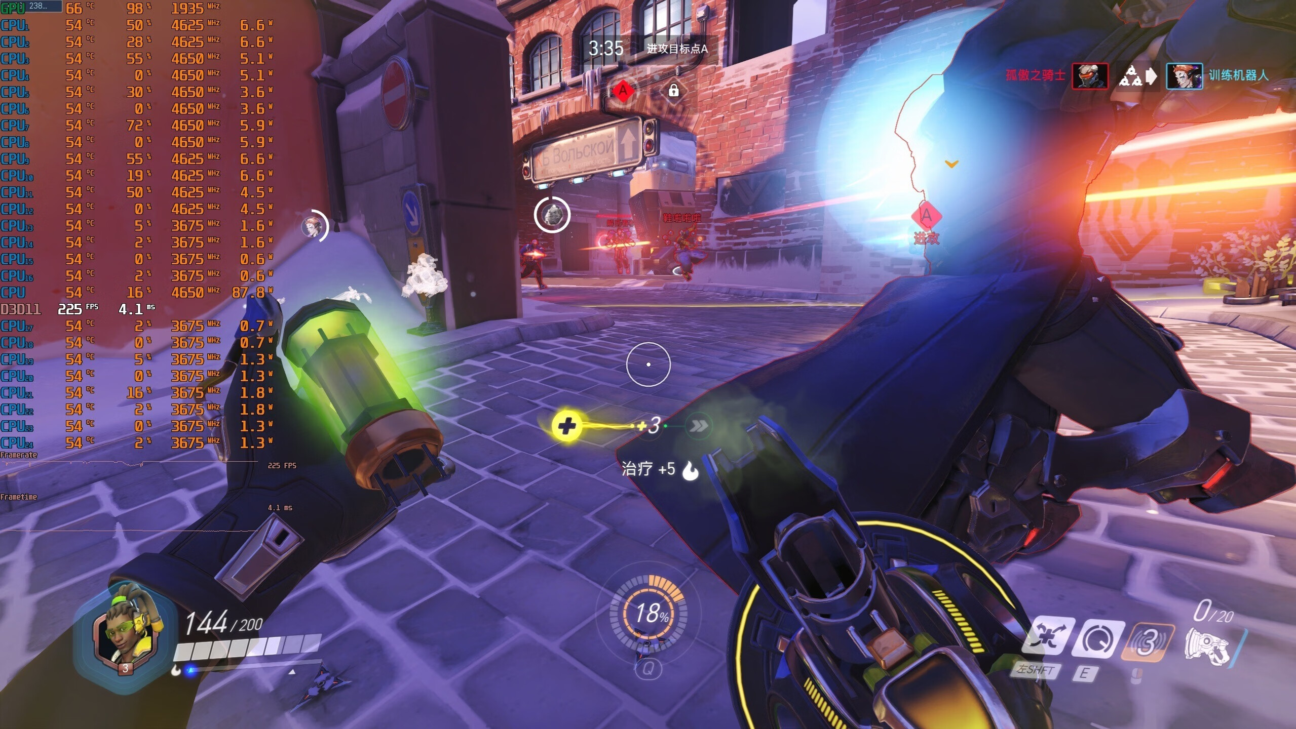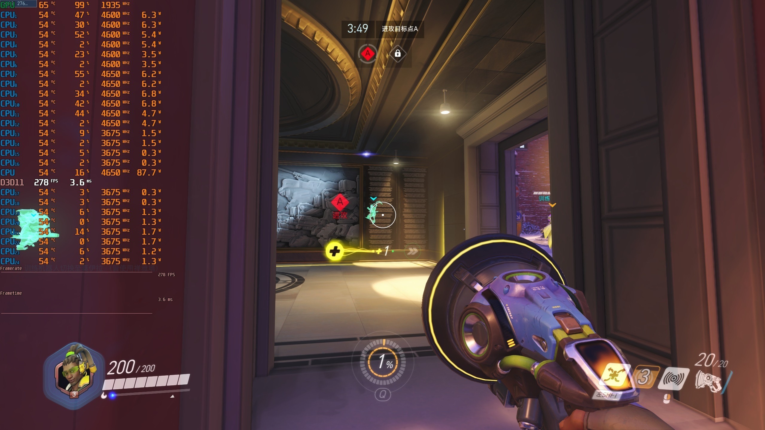 ▼守望先锋OW**,2K分辨率,全极高画质,日常逛街的游戏帧数在278帧左右。