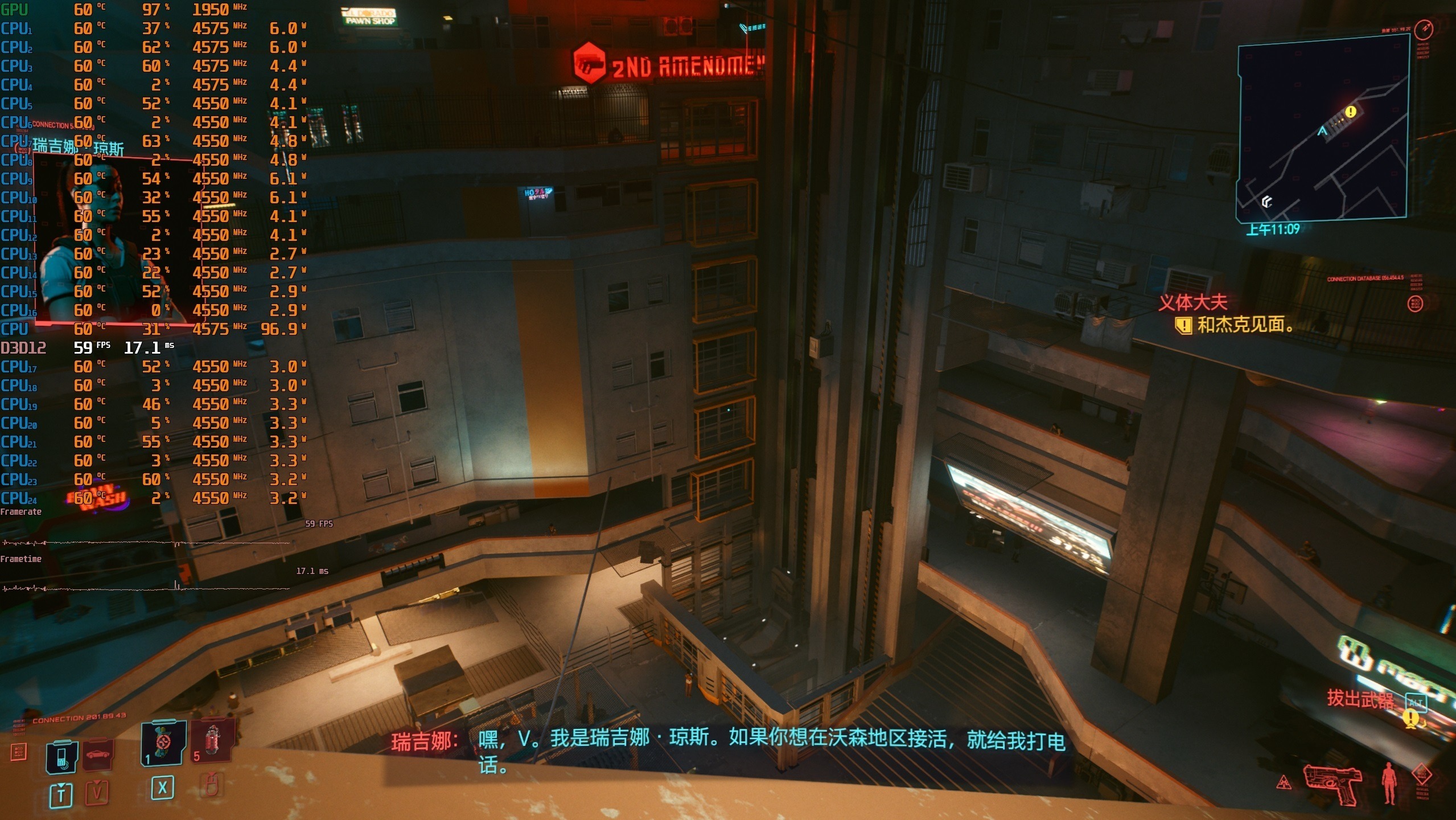 ▼赛博朋克2077,2K分辨率,光追开超级,DLSS自动。