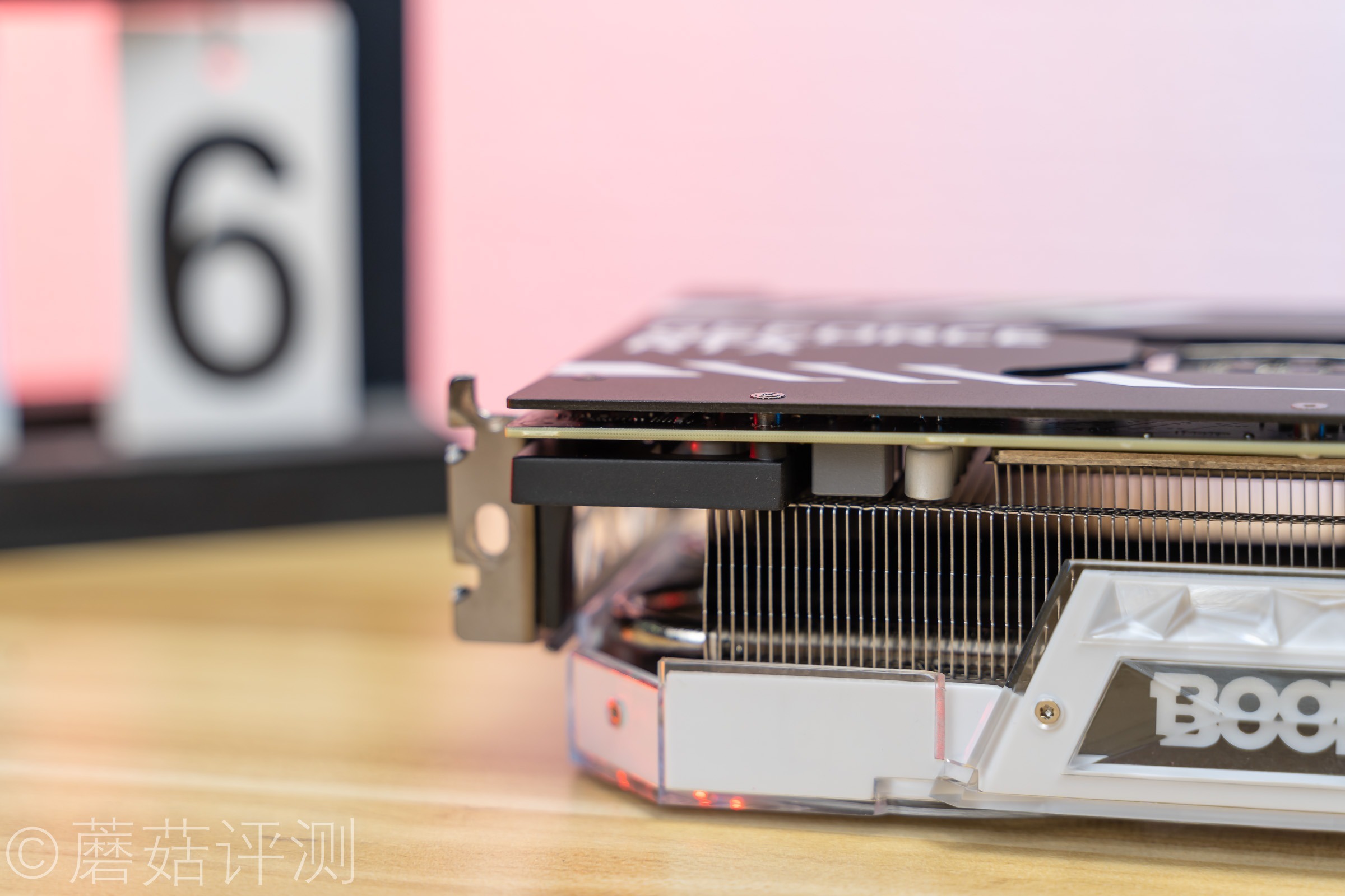 不过,唯一让蘑菇有点不满意的是显卡的金属背板,黑色的,涂装有些乱,如果更有设计一点就更好了。