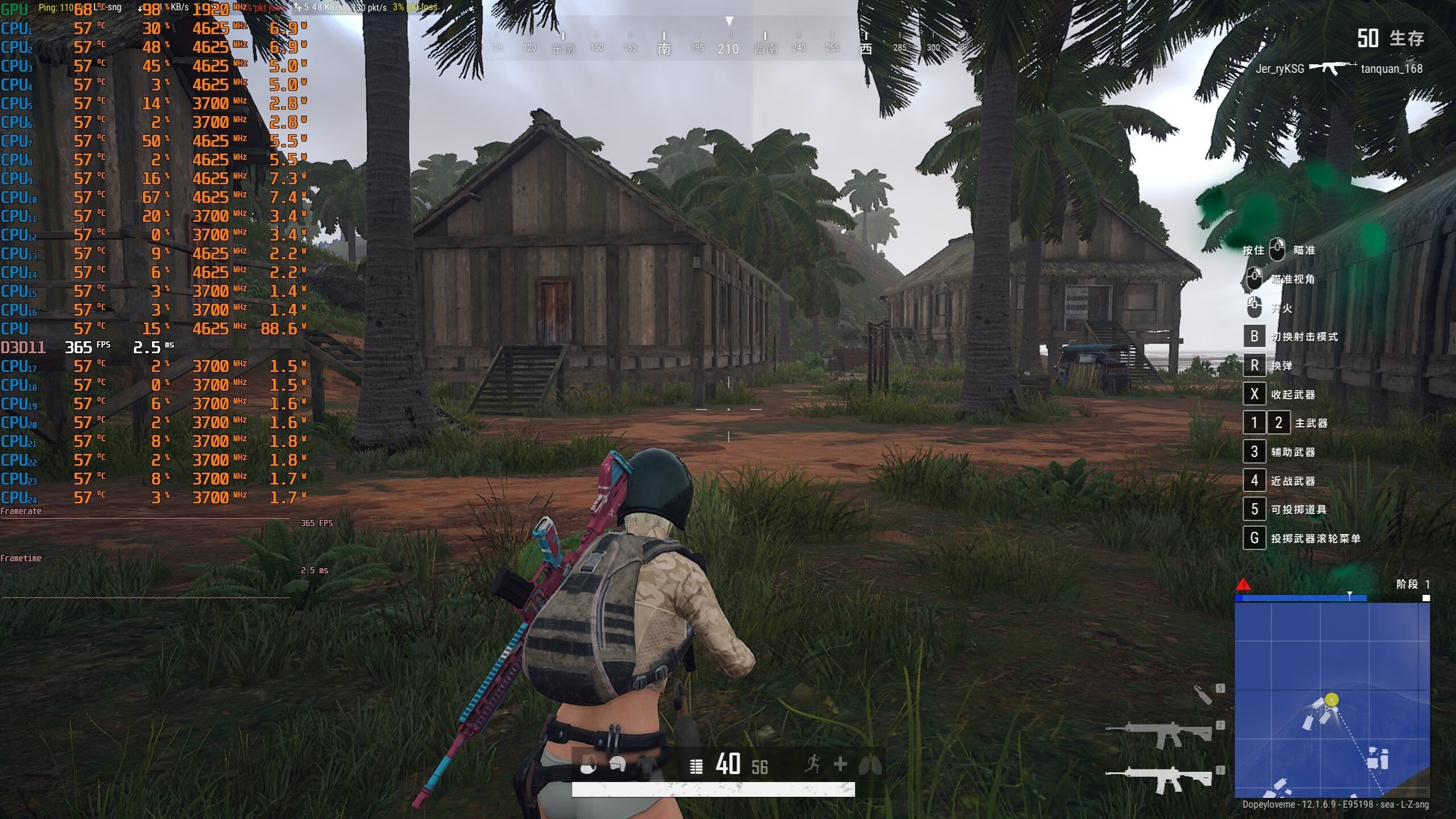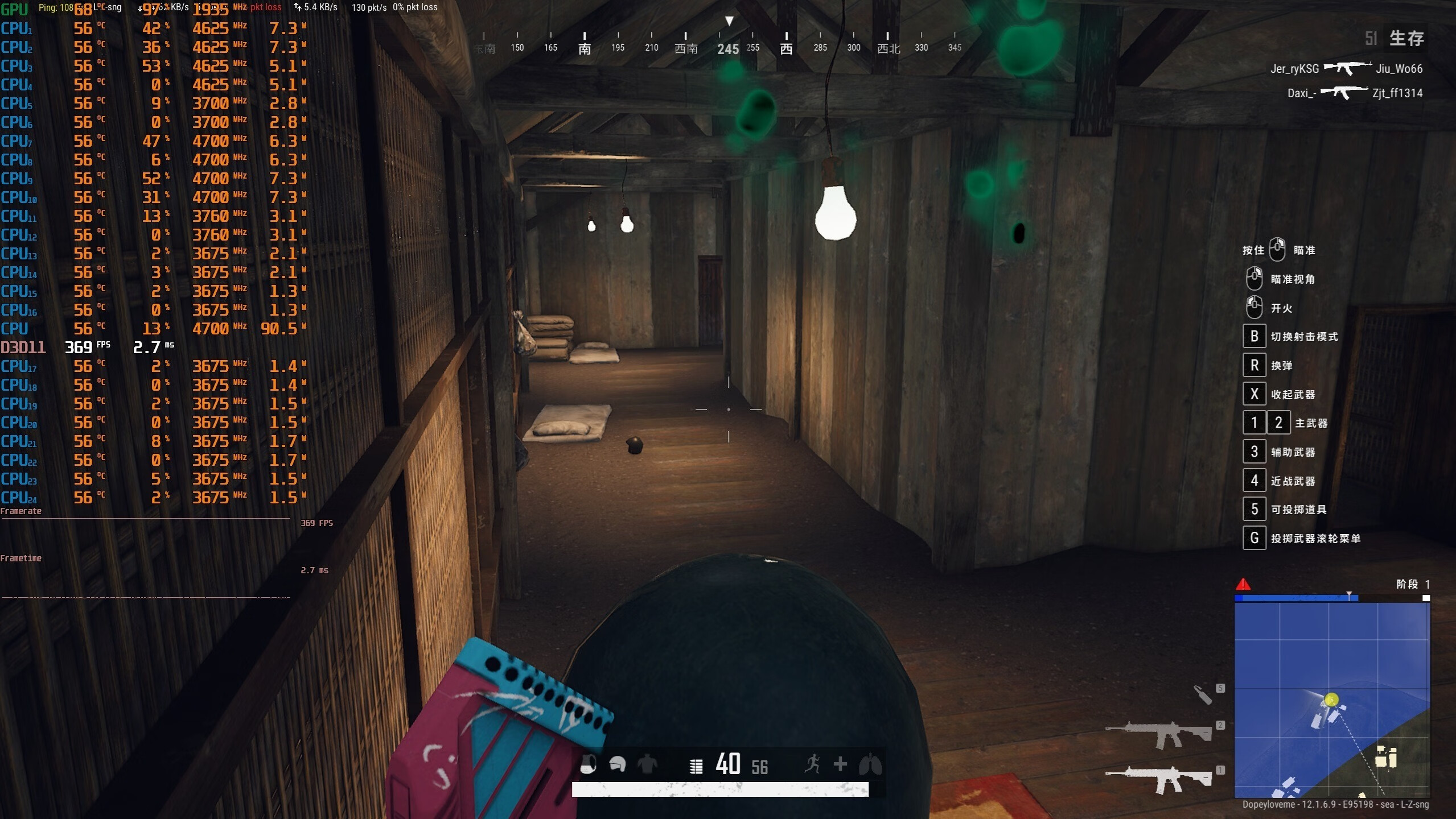 ▼吃鸡,2K分辨率,全高画质,室内的游戏帧数在369帧左右。