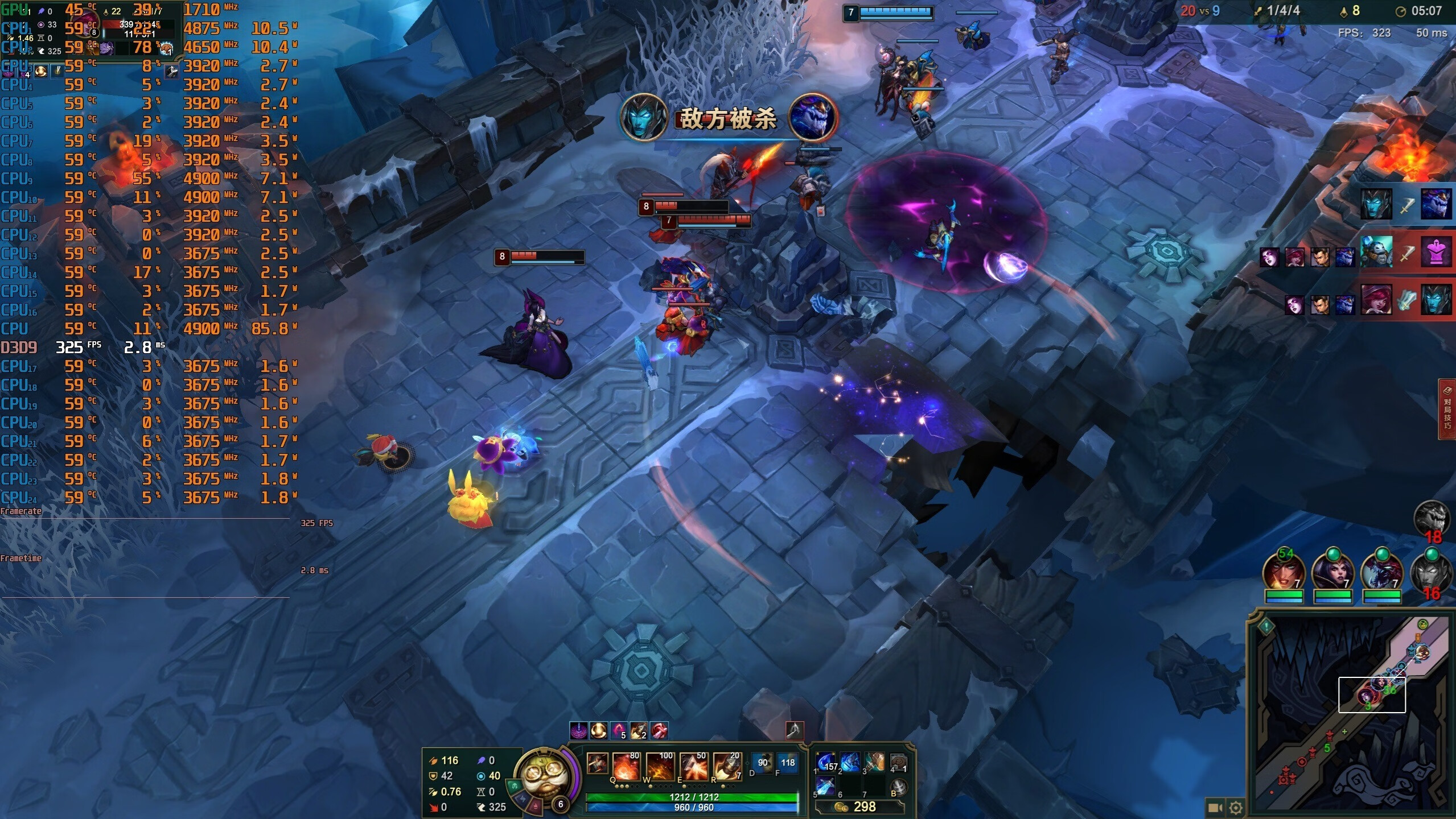 ▼日常团战的时候,游戏帧数在325帧左右,还是很流畅的。