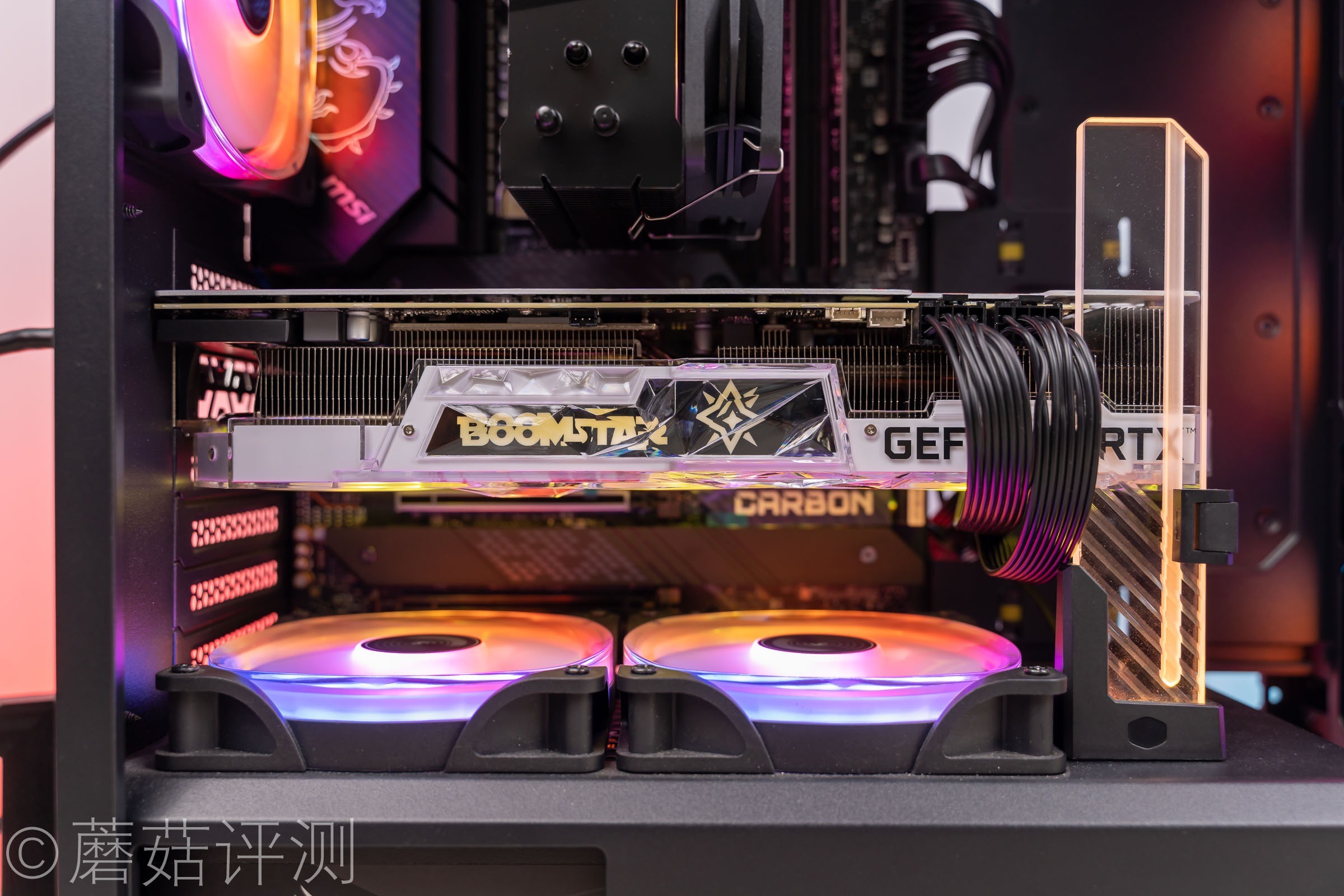 ▼主板是微星的Z690暗黑CARBON主板,其主板的IO饰罩部分有微星标志性的龙盾LOGO,还有ARGB灯效。