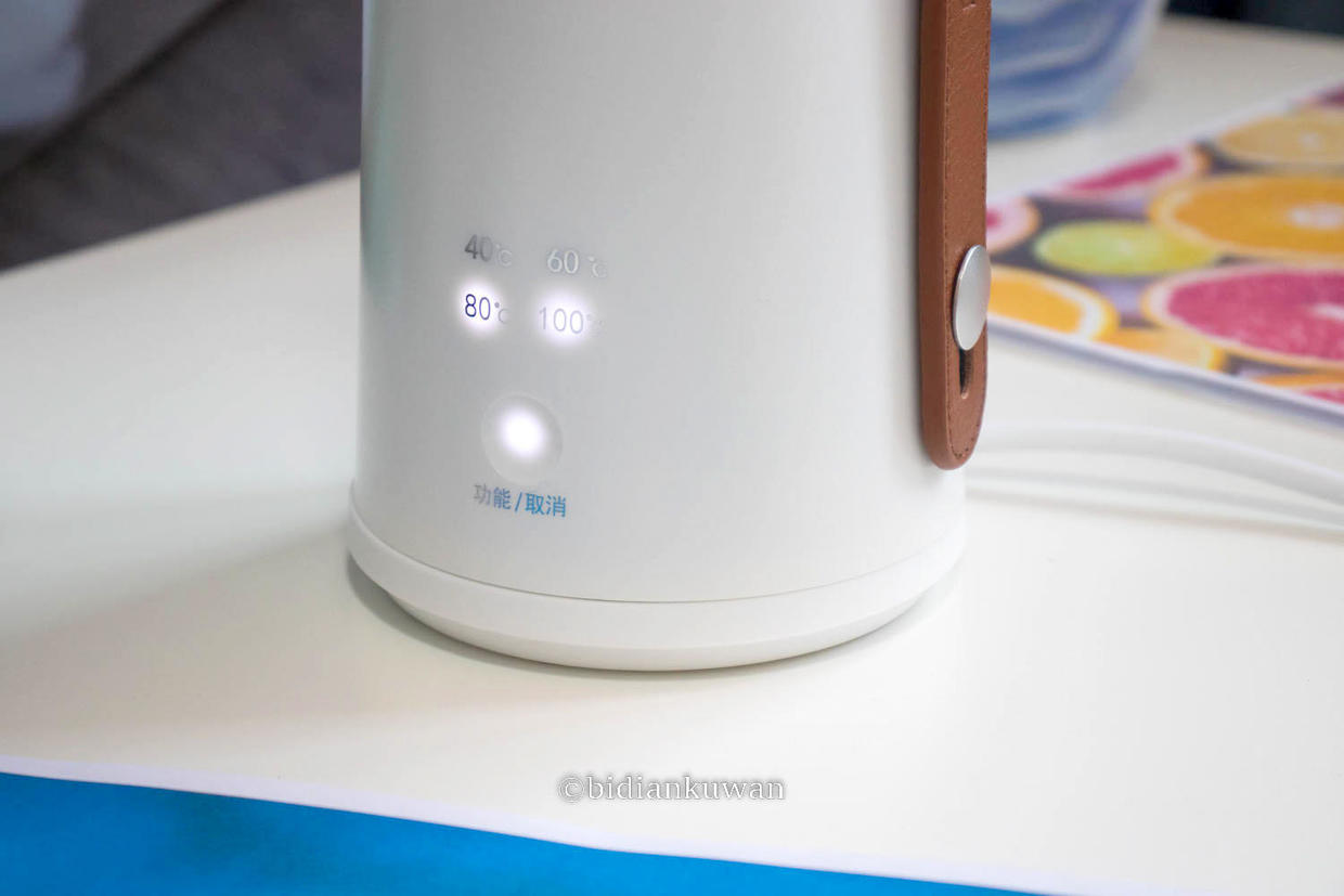 插上市电即可点亮一侧的档位灯,此时可以选择4个档位进行烧水保温设定,也可以随时取消加热或保温,触控对应按键即可。