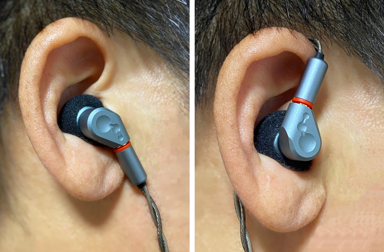 实际上不管是常规的直接挂在耳朵上还是绕耳佩戴都很稳(如上图所示),我个人更喜欢绕耳佩戴,因为把腔体塞得越实,低频的量感越容易聚焦。