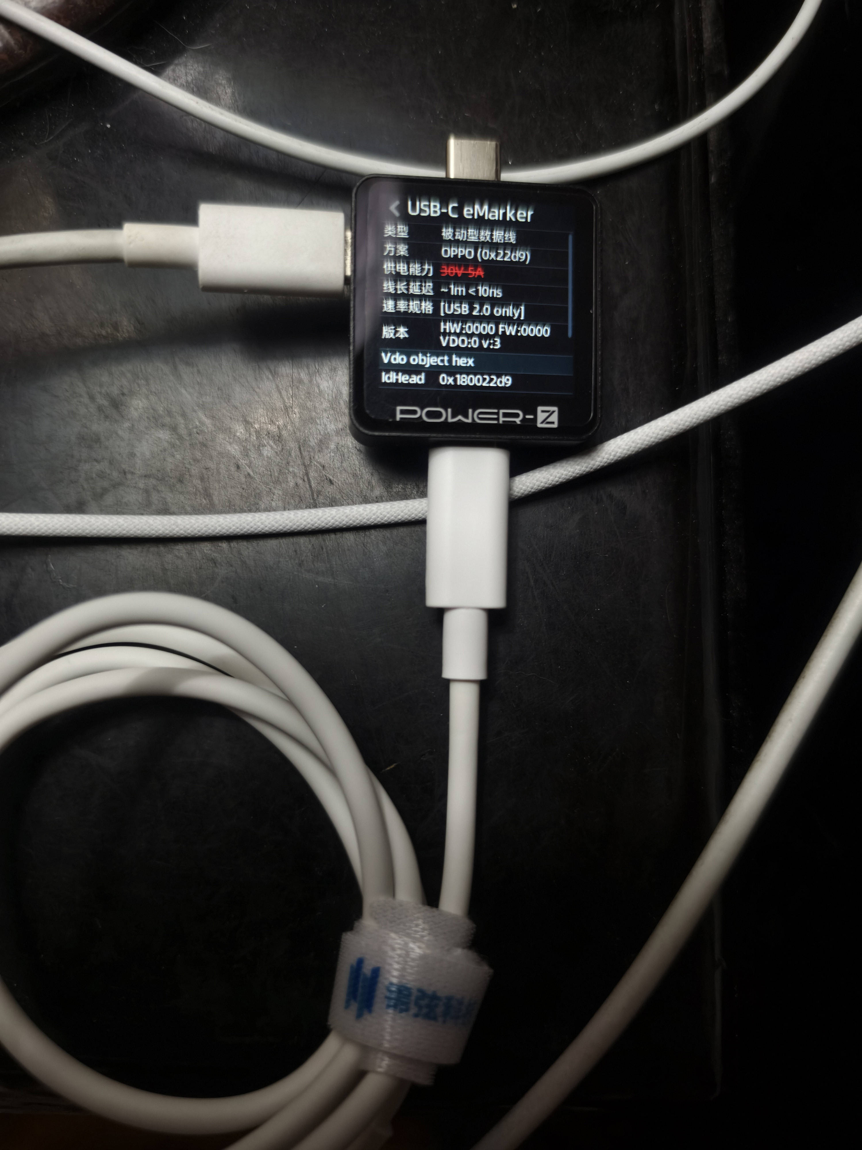 ▼通过POWER-Z KM003C看到C To C款充电线E-Marker芯片的信息如图