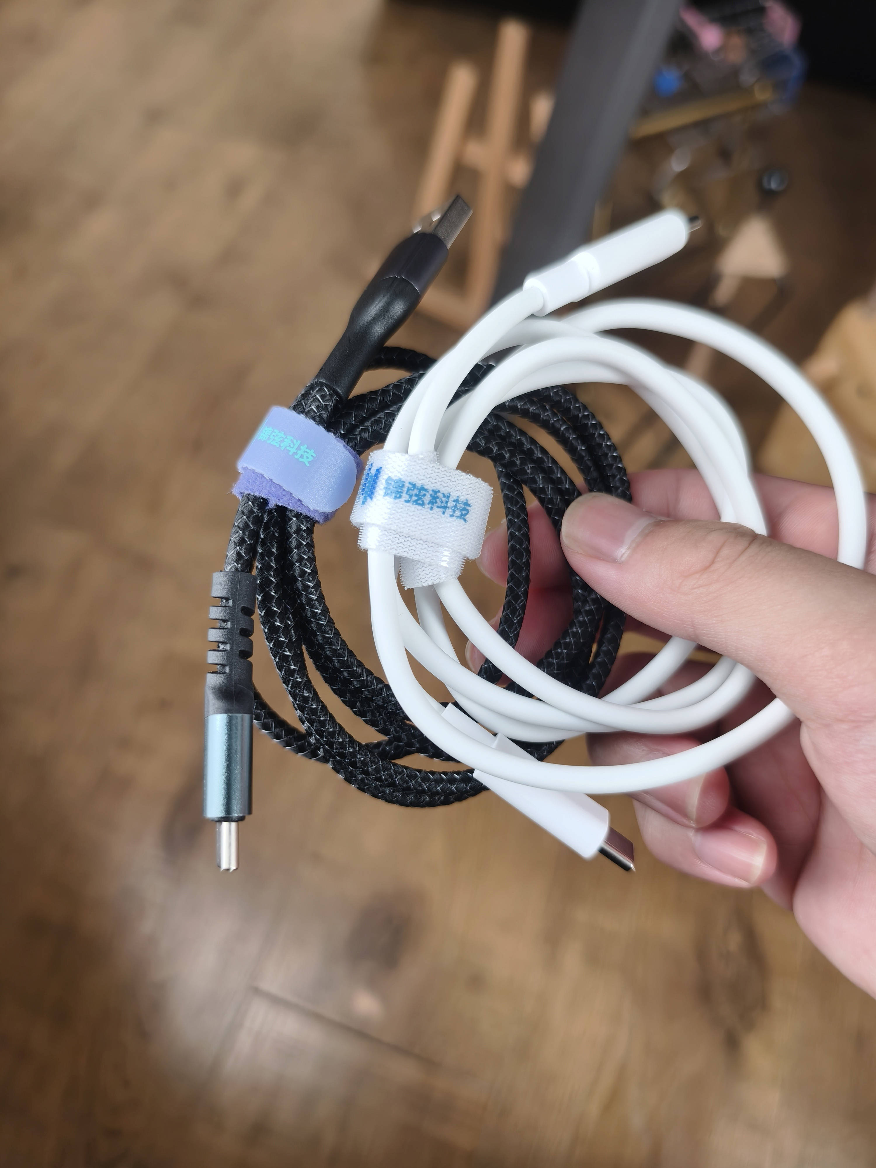 ▼这个锦弦的充电线分为C To C和A To C两种,线的材质有胶皮和编织两种可以选择,每根线都标配了一个魔术贴扎带,方便收纳