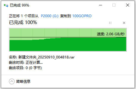 ▼单个2G大文件从P2000里复制出来基本也是秒传,为你节省不少时间
