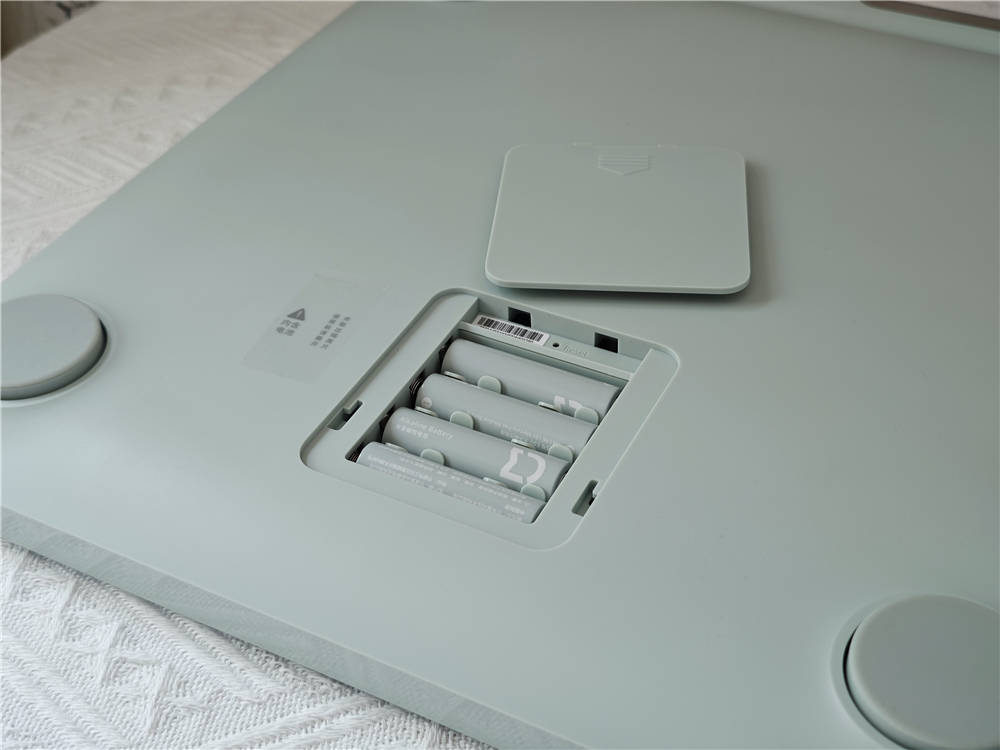 米家八电极体脂秤S800预留电池仓,采用4节5号电池供电,在室温25℃环境下,每天称重3次,续航最长可达180天。