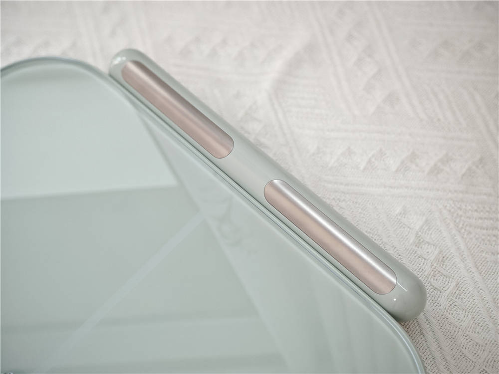 米家八电极体脂秤 S800 延续米家体重秤的简洁设计风格,秤面采用320*345mm大尺寸,采用ITO镀膜钢化玻璃材质,表面光滑平整,易于清洁,秤体的四周采用圆润的边角设计,避免尖锐边角可能带来的碰撞伤害,既安全又美观。