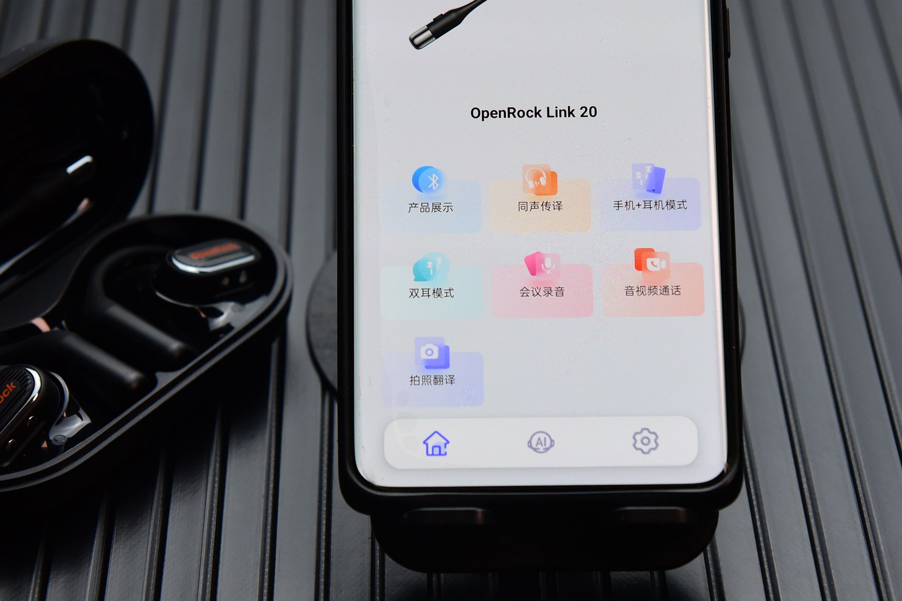 ▲比如OPENROCK LINK20,下载其官方APP后,不仅有同声传译功能,还有手机+耳机模式以及双耳模式、会议录音、音视频通话翻译、拍照翻译等功能。
