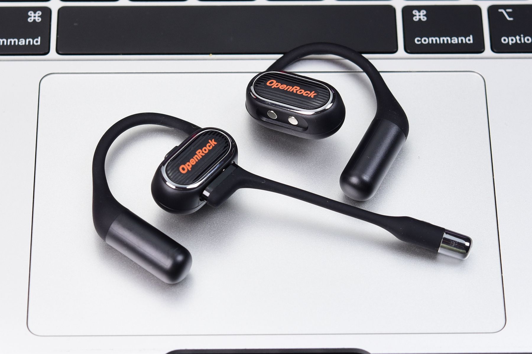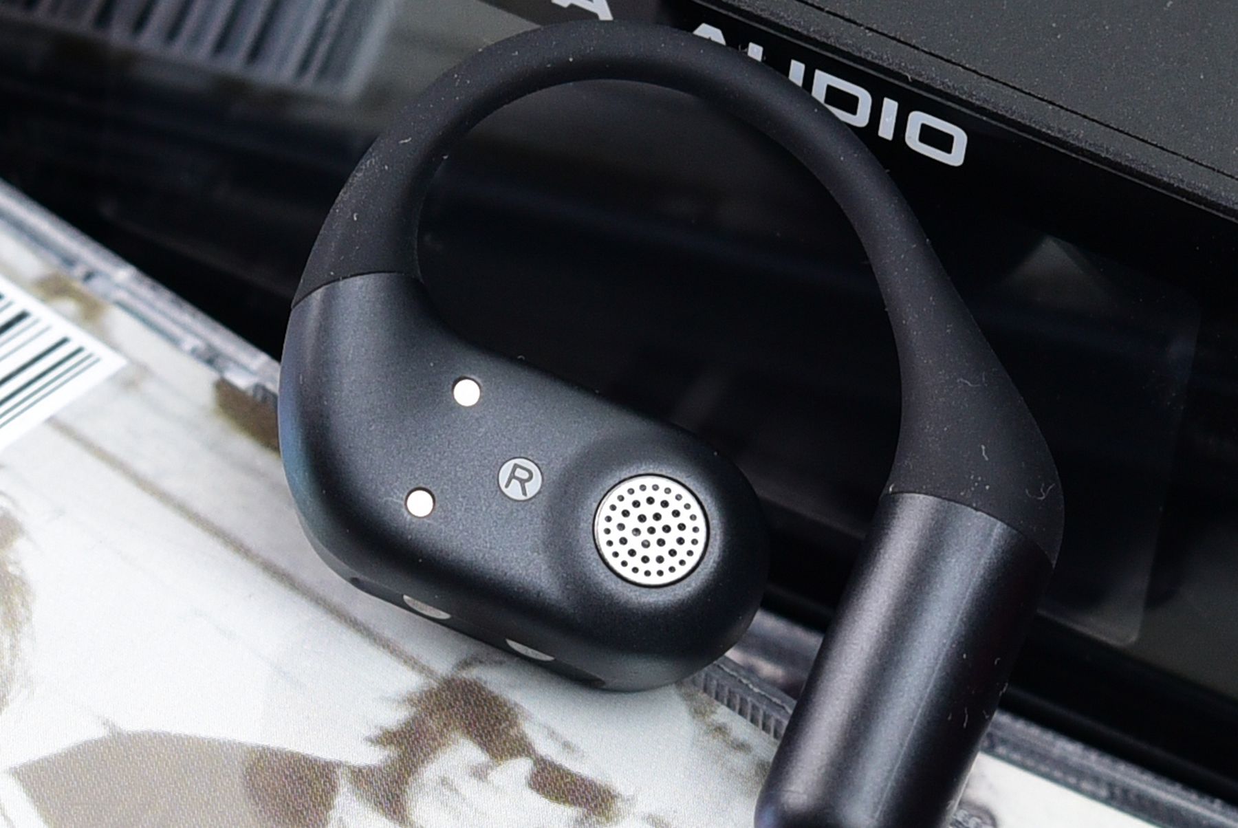 如上图所示,和常规的开放式不入耳耳机相比,多了一个麦克风。