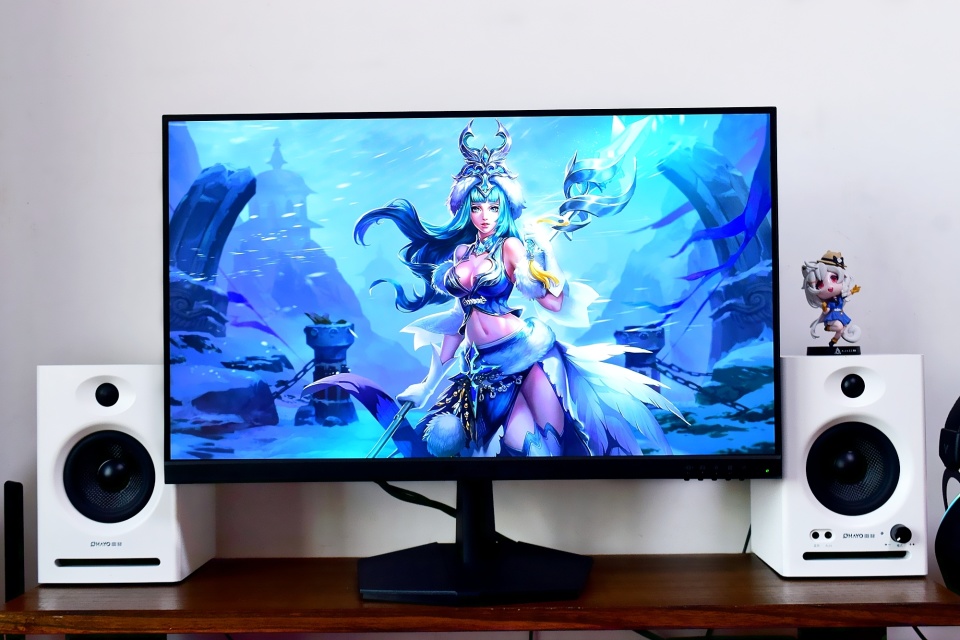 联想来酷N24采用24英寸IPS技术面板,拥有1677万色显示色彩,8bit色深,能够让显色更精准,再加上三边微边框设计,可以带来更具沉浸感的游戏体验。通过实际体验,显示器色彩丰富,色彩还原准确,整体显示效果比较让人满意。
