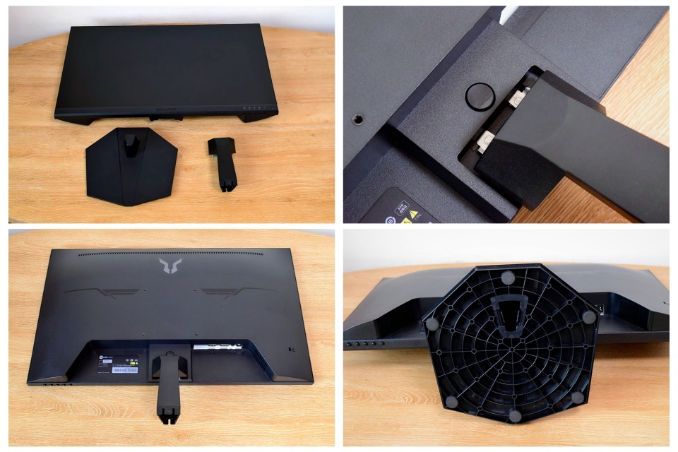 虽然大多数联想显示器都采用免工具安装,不过支架和显示器之间一般都通过螺丝固定,而联想来酷N24不仅支持免工具安装,而且全部采用卡扣设计, 好处是更方便手动快速安装,不足之处是无法灵活调节。