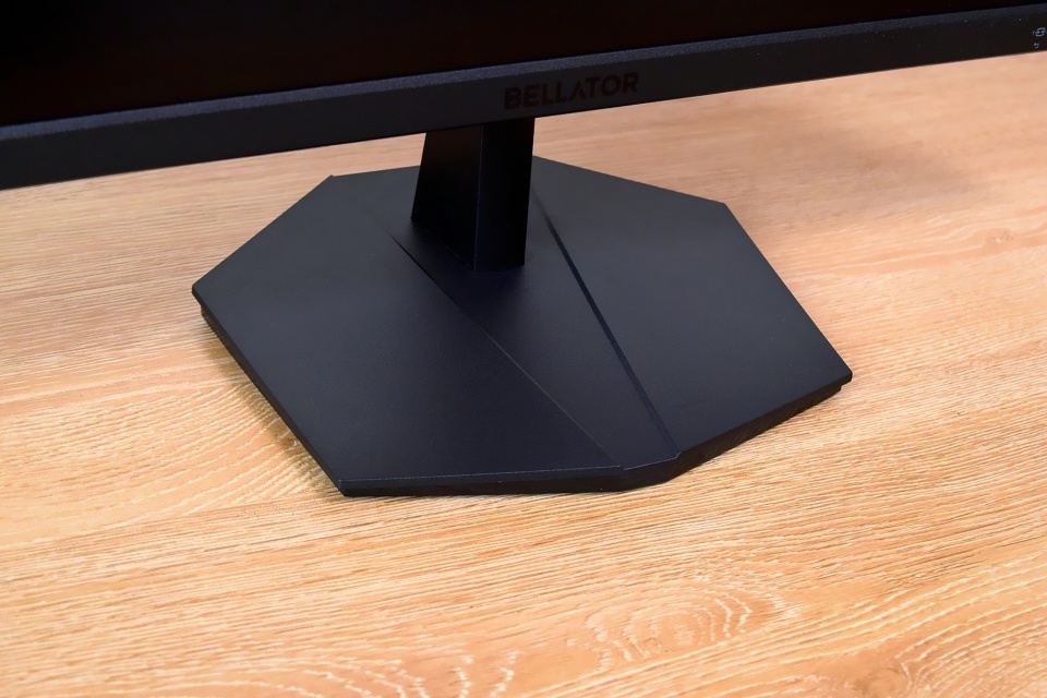 显示器的底座采用了六边形造型,小巧时尚、占地少,能够释放更多桌面空间,不过受限于成本原因,在支架位置并没有设计理线器,这点稍显遗憾。