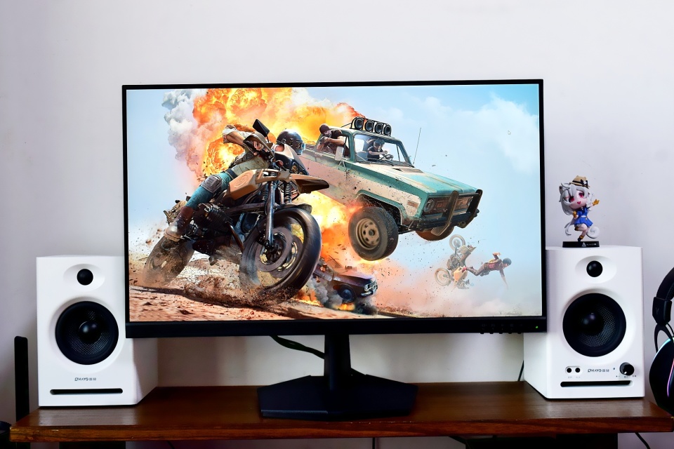当然有些玩家看到1080p分辨率,就会担心屏幕颗粒感是否会很明显。其实23.8英寸+1080p分辨率的组合,能够满足用户的大部分使用场景。通过实际测试,正常坐在屏幕前并不会有任何颗粒感,即使靠近屏幕,也不会有明显的颗粒感,日常使用完全没问题。